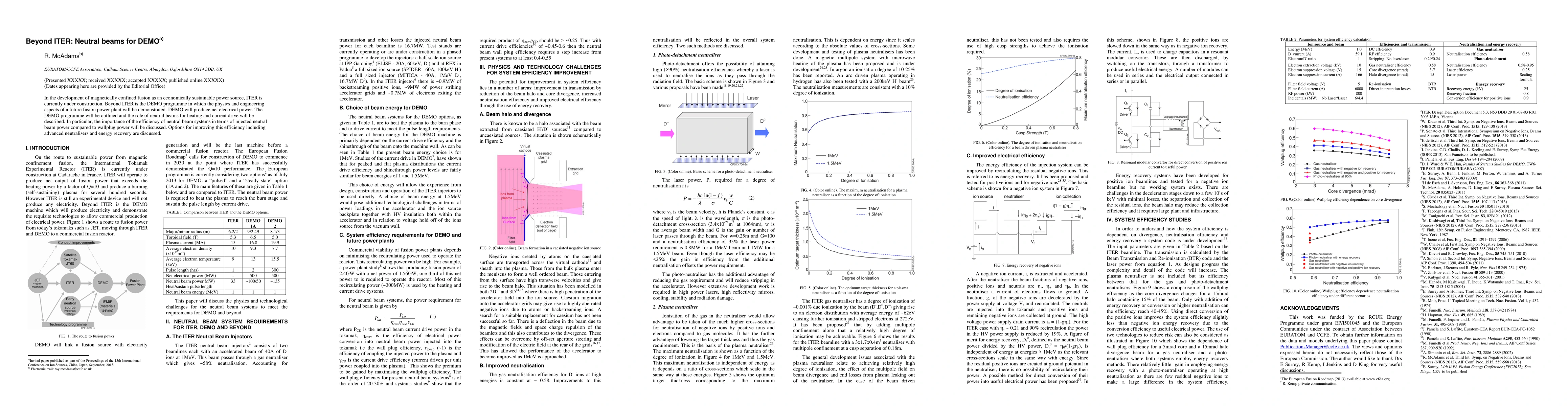 This paper outlines the DEMO programme, which aims to demonstrate the physics and engineering of a future fusion power plant beyond ITER. It emphasizes the role of neutral beams in heating and current drive, focusing on the efficiency of neutral beam systems and exploring advanced methods like improved neutralizers and energy recovery to enhance performance.