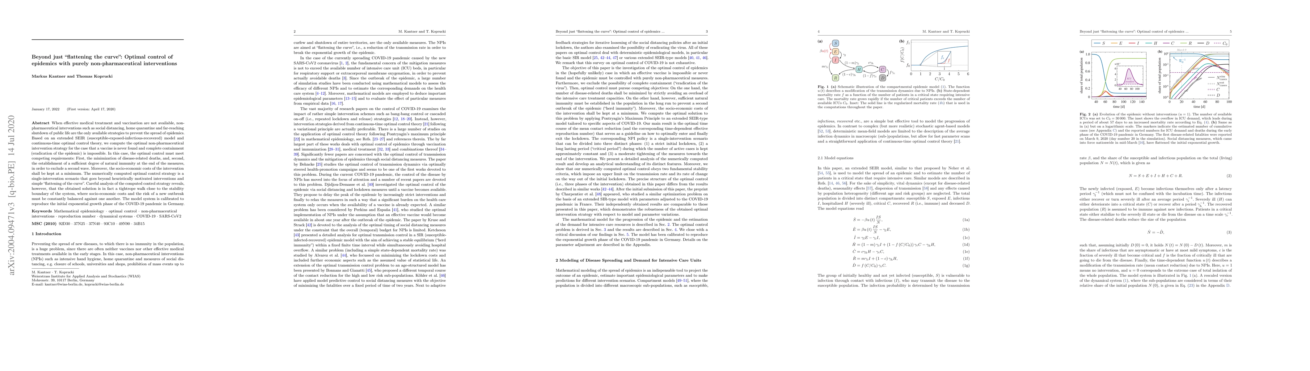 This paper develops an optimal control strategy for epidemics using purely non-pharmaceutical interventions, focusing on minimizing deaths and preventing second waves while minimizing socio-economic costs. The optimal strategy, derived from an extended SEIR model, reveals a delicate balance between intervention intensity and risk of resurgence.