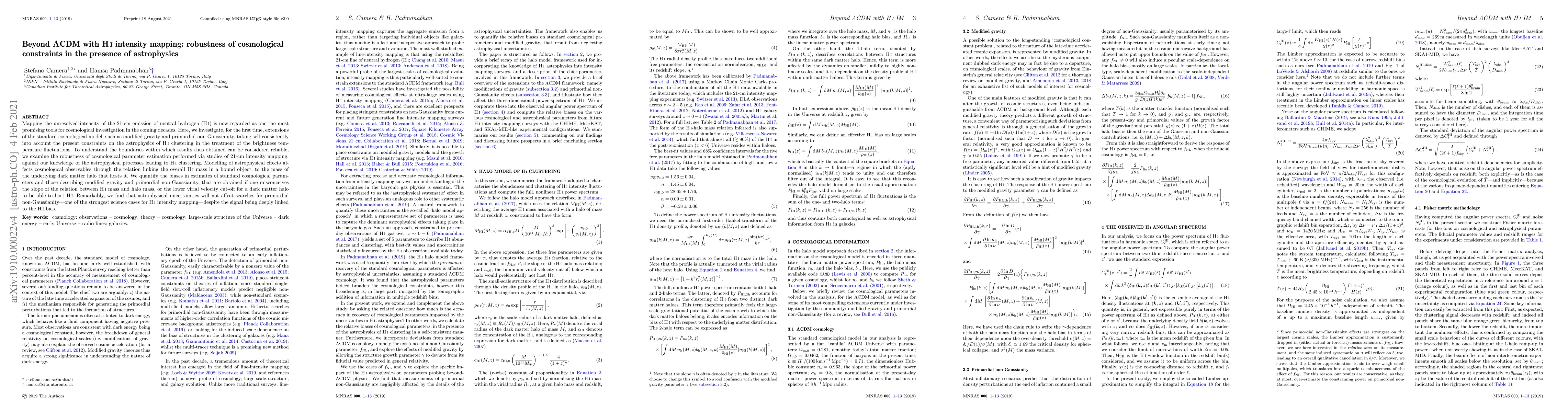 This paper explores the robustness of cosmological constraints derived from 21-cm HI intensity mapping, considering extensions beyond the standard $\Lambda$CDM model, such as modified gravity and primordial non-Gaussianity, while accounting for astrophysical uncertainties in HI clustering. It finds that despite astrophysical uncertainties, searches for primordial non-Gaussianity remain reliable.