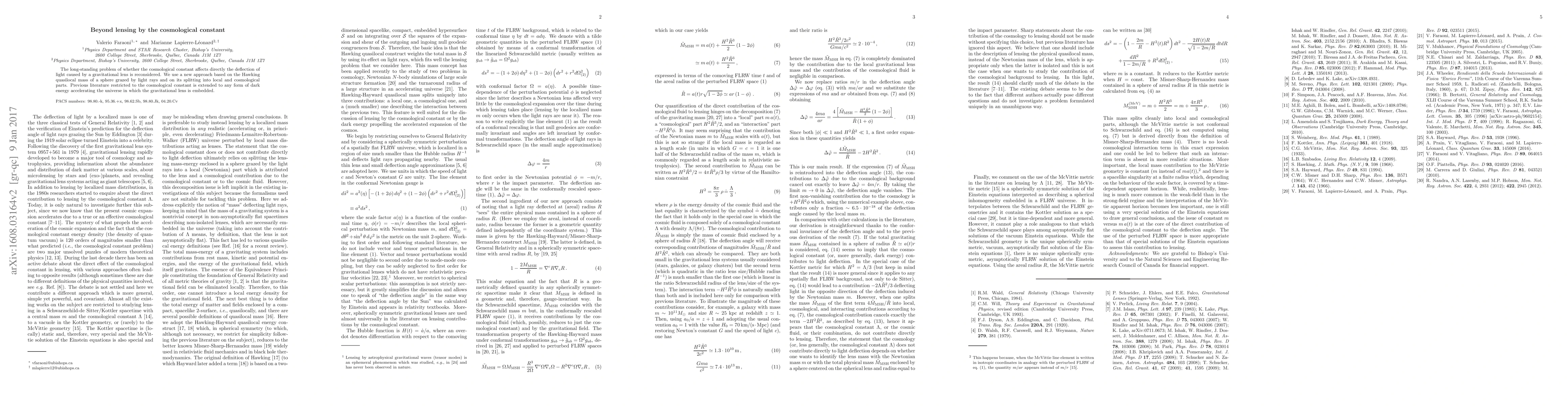 The long-standing problem of whether the cosmological constant affects directly the deflection of light caused by a gravitational lens is reconsidered. We use a new approach based on the Hawking quasilocal mass of a sphere grazed by light rays and on its splitting into local and cosmological parts. Previous literature restricted to the cosmological constant is extended to any form of dark energy accelerating the universe in which the gravitational lens is embedded.
