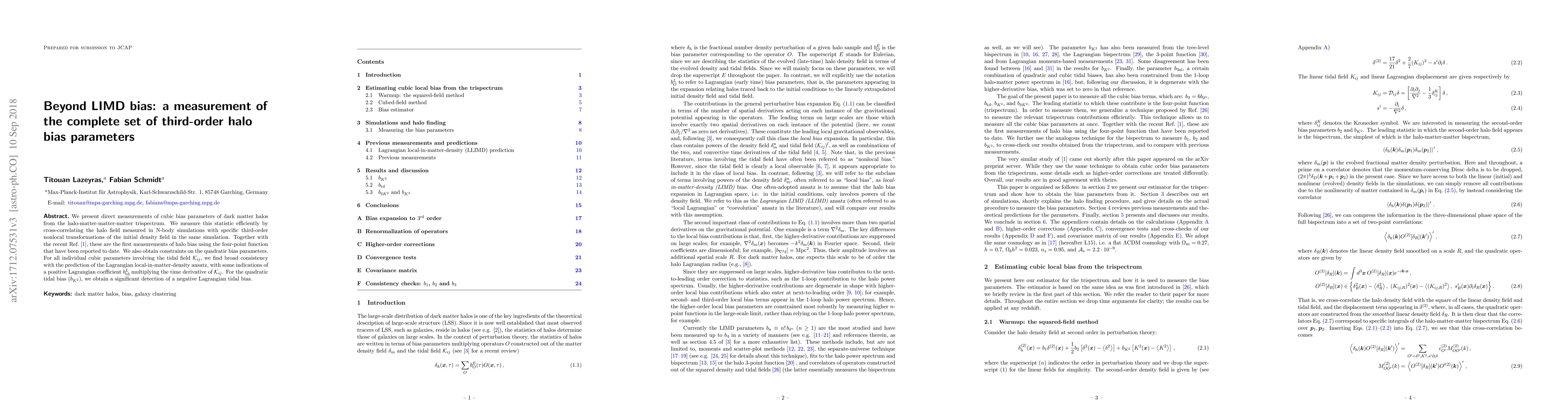 We present direct measurements of cubic bias parameters of dark matter halos from the halo-matter-matter-matter trispectrum. We measure this statistic efficiently by cross-correlating the halo field measured in N-body simulations with specific third-order nonlocal transformations of the initial density field in the same simulation. Together with the recent Abidi & Baldauf (2018), these are the first measurements of halo bias using the four-point function that have been reported to date. We also obtain constraints on the quadratic bias parameters. For all individual cubic parameters involving the tidal field $\mathcal{K}_{ij}$, we find broad consistency with the prediction of the Lagrangian local-in-matter-density ansatz, with some indications of a positive Lagrangian coefficient $b_{\rm td}^L$ multiplying the time derivative of $\mathcal{K}_{ij}$. For the quadratic tidal bias ($b_{K^2}$), we obtain a significant detection of a negative Lagrangian tidal bias.