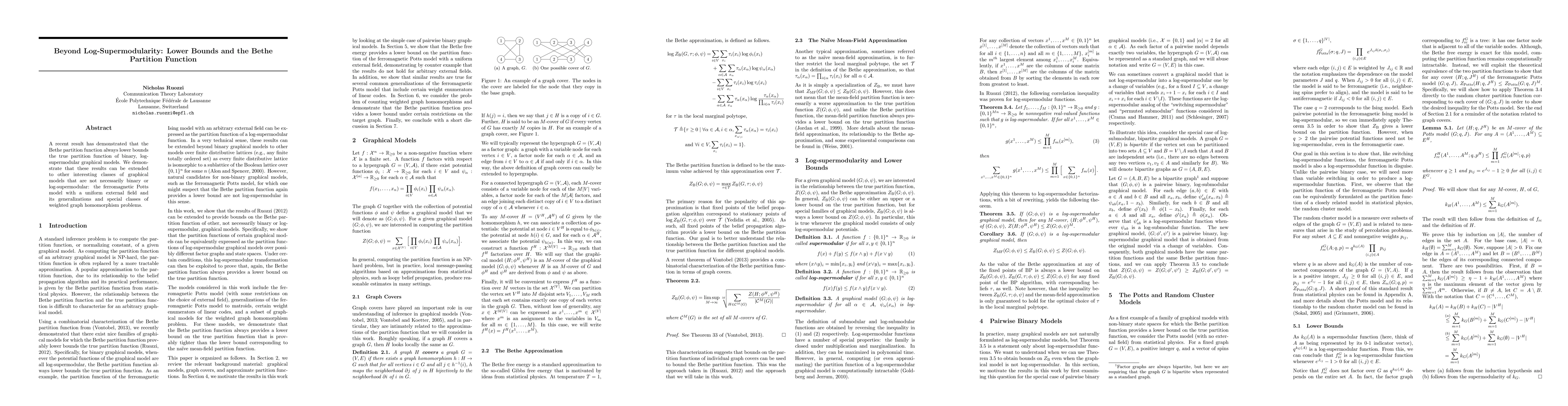This paper extends the lower bounding property of the Bethe partition function to various graphical models beyond binary log-supermodularity, including the Potts model and weighted graph homomorphism problems. The Bethe partition function is shown to provide a consistent lower bound for these broader classes of models.