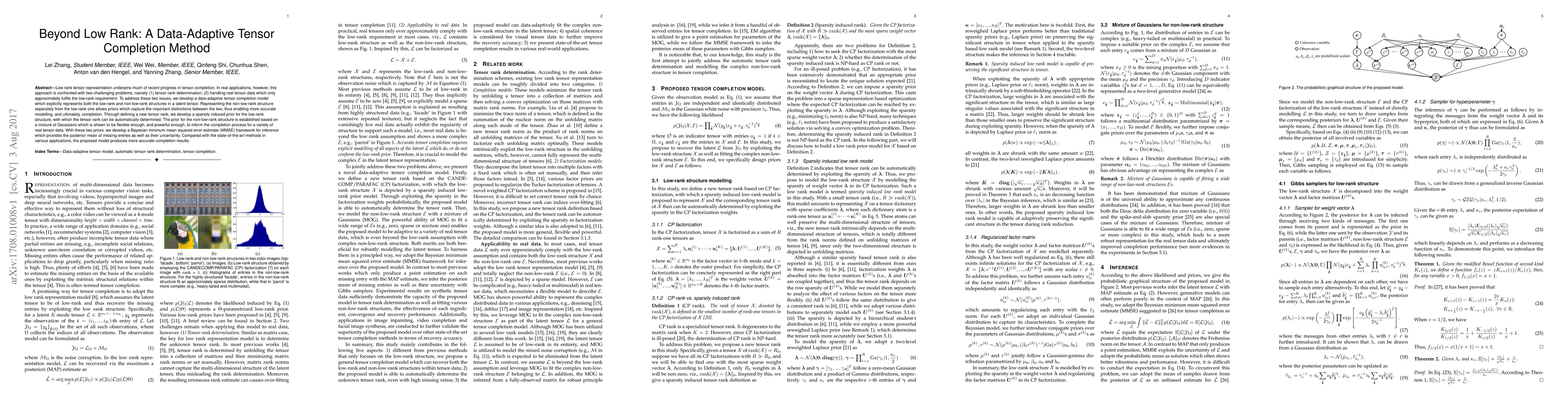 This paper proposes a data-adaptive tensor completion method that addresses the challenges of tensor rank determination and handling non-low-rank structures. It introduces a Bayesian MMSE framework with two distinct priors for low-rank and non-low-rank components, leading to more accurate tensor completion results compared to existing methods.