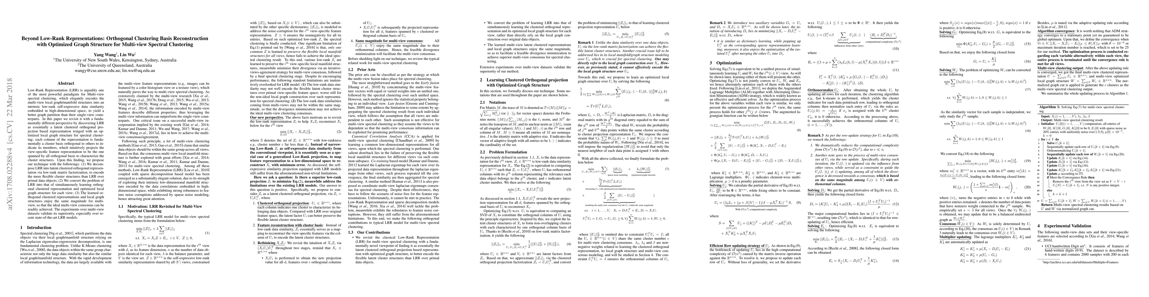 This paper proposes a novel approach to multi-view spectral clustering by decomposing Low-Rank Representation into latent clustered orthogonal projections with optimized local graph structures. The method aims to achieve better graph partitions by learning orthogonal cluster bases and consensus across views.