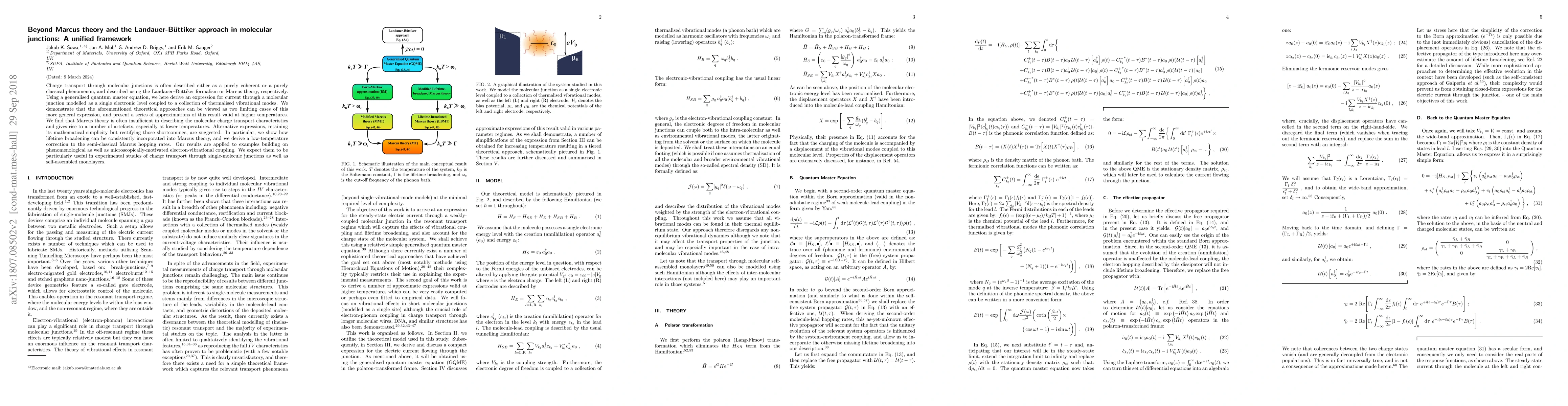 This paper proposes a unified framework for charge transport in molecular junctions, showing that Marcus theory and Landauer-Büttiker formalism are limiting cases of a generalized quantum master equation. It corrects the insufficiencies of Marcus theory, especially at lower temperatures, by incorporating lifetime broadening and deriving a low-temperature correction.