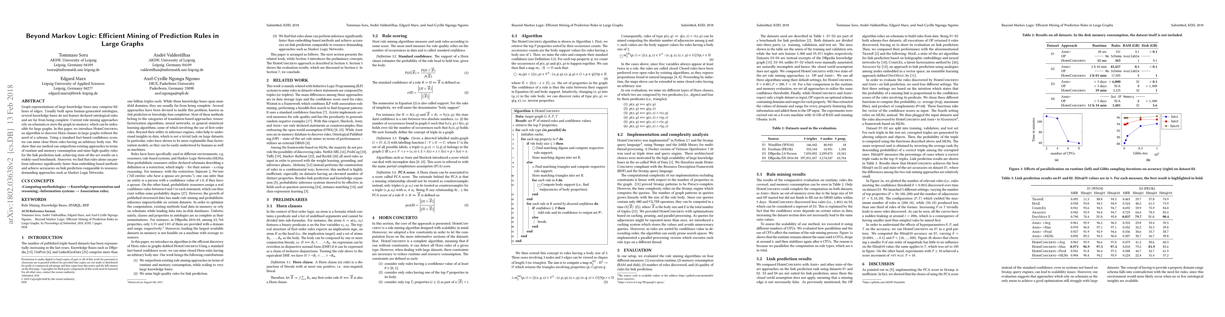 A new algorithm called HornConcerto efficiently mines prediction rules in large graphs without a predefined schema, achieving state-of-the-art results in link prediction tasks.