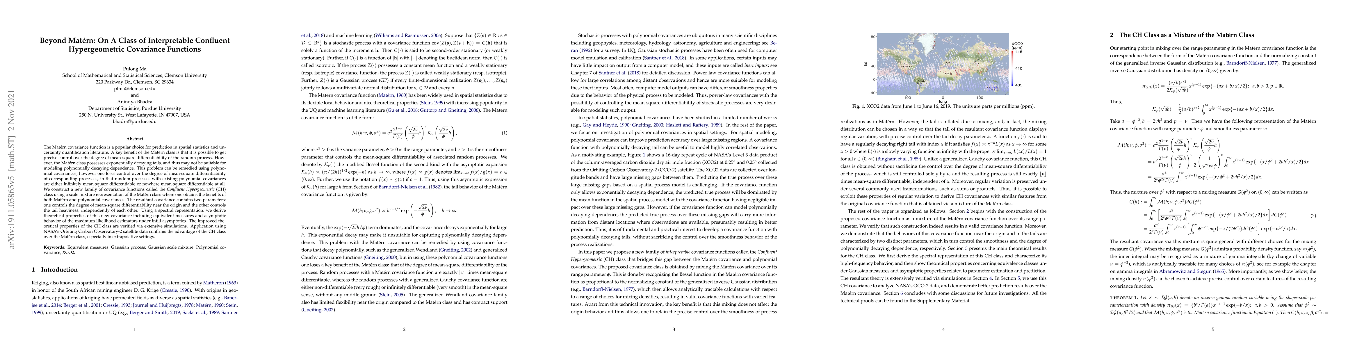 This paper introduces a new class of interpretable confluent hypergeometric covariance functions that combine the benefits of Matérn and polynomial covariances. The proposed Confluent Hypergeometric (CH) class offers independent control over mean-square differentiability and tail heaviness, addressing the limitations of existing models. Theoretical properties and simulation results demonstrate the advantages of the CH class, particularly in extrapolative settings, as shown through an application using NASA satellite data.