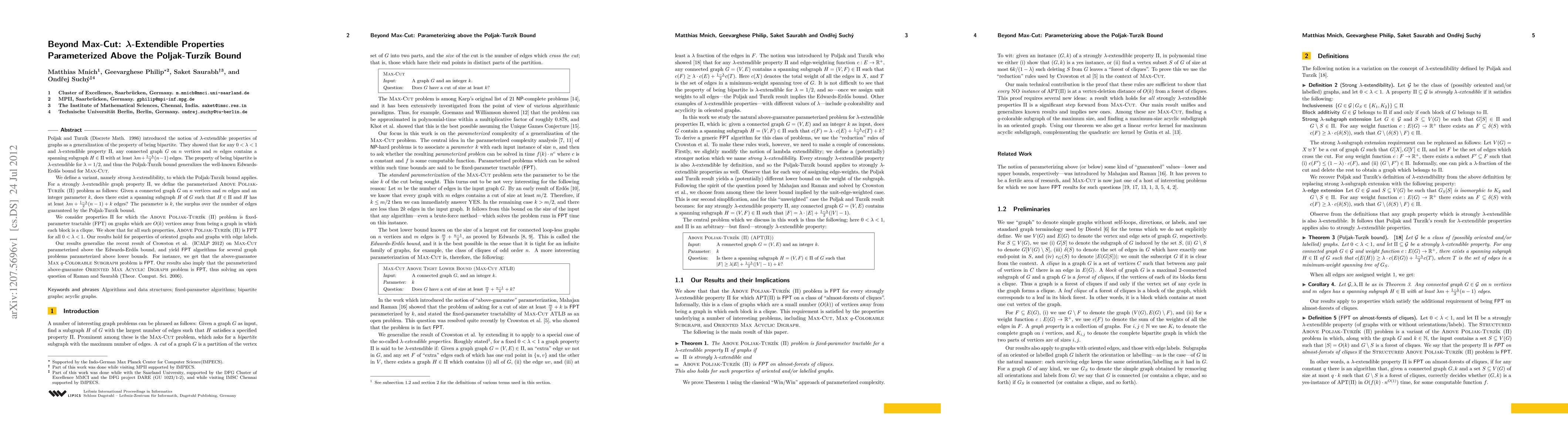 This paper generalizes the Poljak-Turz\'{i}k bound for \lambda-extendible graph properties, introducing strong \lambda-extendibility and the Above Poljak-Turz\'{i}k (APT) problem. It demonstrates that APT problems for strongly \lambda-extendible properties are fixed-parameter tractable (FPT) when parameterized by the surplus over the Poljak-Turz\'{i}k bound, extending results for Max-Cut and solving open questions regarding the Oriented Max Acyclic Digraph problem.