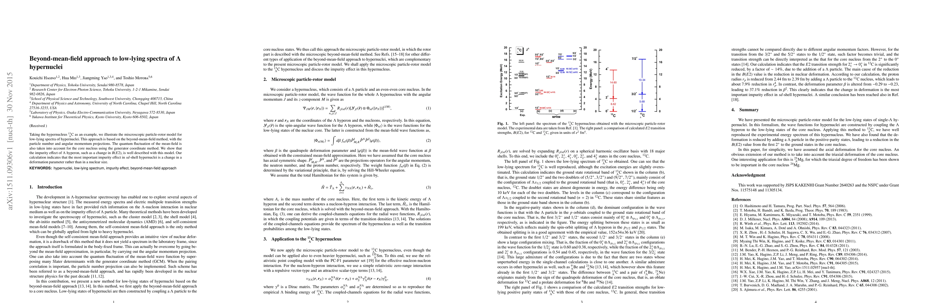 Taking the hypernucleus $^{13}_{~\Lambda}$C as an example, we illustrate the miscroscopic particle-rotor model for low-lying spectra of hypernuclei. This approach is based on the beyond-mean-field method, with the particle number and angular momentum projections. The quantum fluctuation of the mean-field is also taken into account for the core nucleus using the generator coordinate method. We show that the impurity effect of $\Lambda$ hyperon, such as a change in $B(E2)$, is well described with this model. Our calculation indicates that the most important impurity effect in $sd$-shell hypernuclei is a change in a deformation parameter rather than in a nuclear size.