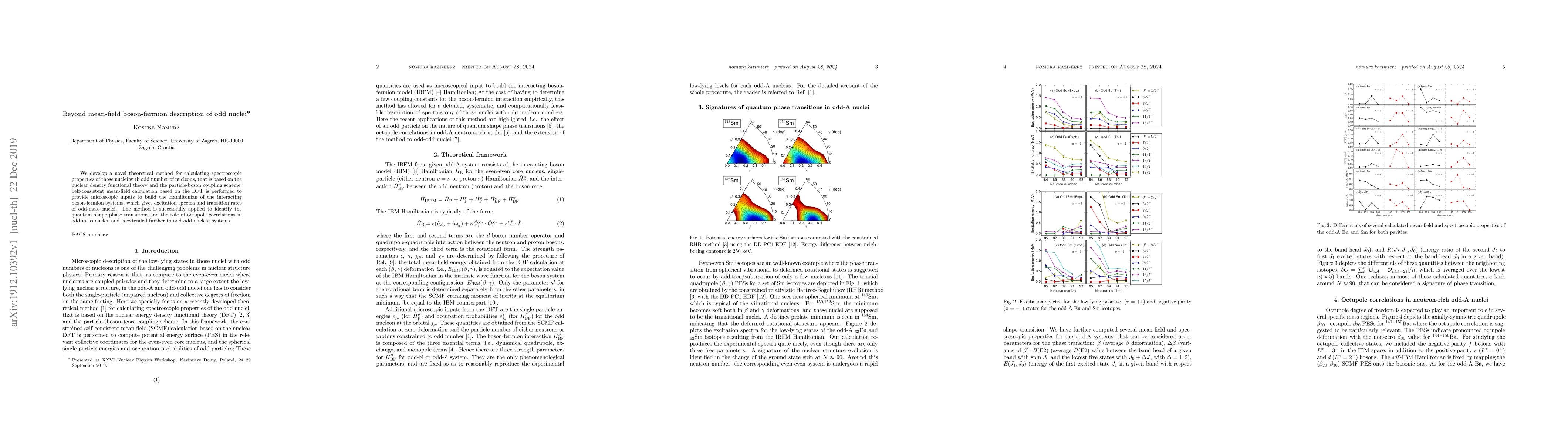 This paper introduces a new theoretical method based on nuclear density functional theory and particle-boson coupling to calculate spectroscopic properties of odd-mass nuclei, identifying quantum shape phase transitions and the role of octupole correlations, and extending the approach to odd-odd nuclear systems. The method provides accurate excitation spectra and transition rates.