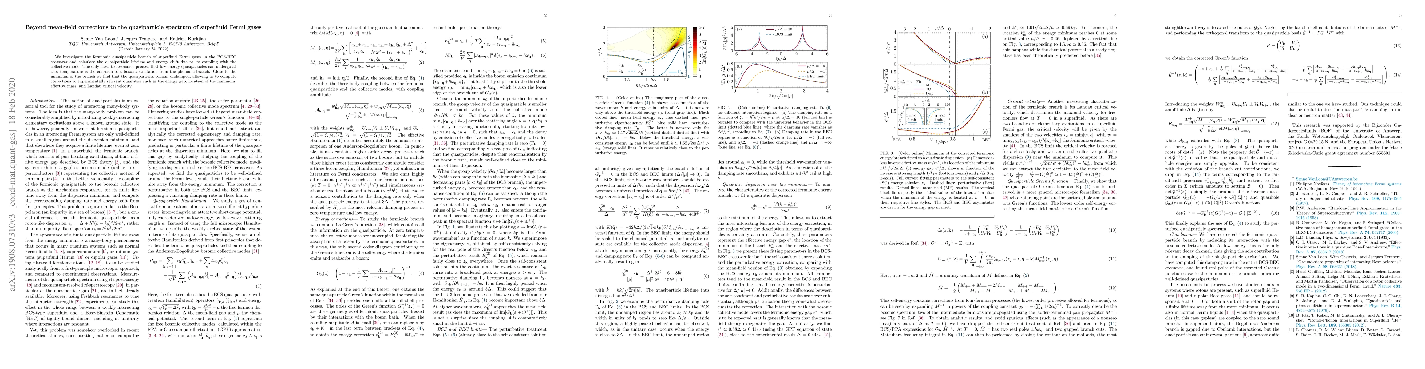 We investigate the fermionic quasiparticle branch of superfluid Fermi gases in the BCS-BEC crossover and calculate the quasiparticle lifetime and energy shift due to its coupling with the collective mode. The only close-to-resonance process that low-energy quasiparticles can undergo at zero temperature is the emission of a bosonic excitation from the phononic branch. Close to the minimum of the branch we find that the quasiparticles remain undamped, allowing us to compute corrections to experimentally relevant quantities such as the energy gap, location of the minimum, effective mass, and Landau critical velocity.