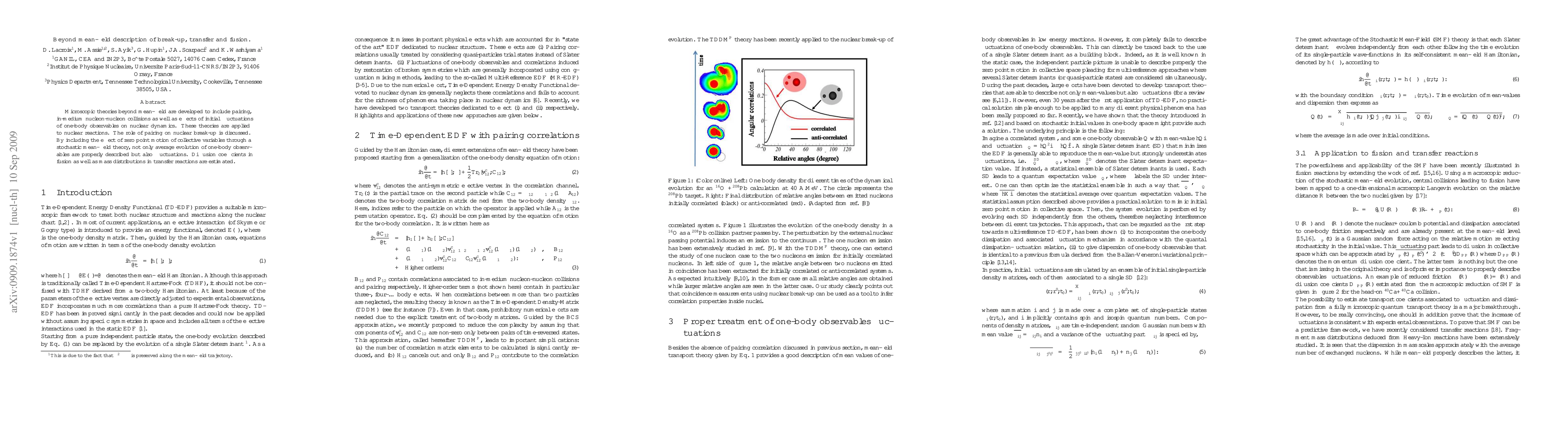 This paper develops microscopic theories beyond mean-field to include pairing, nucleon-nucleon interactions, and initial fluctuations, applying them to nuclear reactions. It estimates diffusion coefficients in fusion and mass distributions in transfer reactions, highlighting the role of pairing and zero point motion in nuclear dynamics.