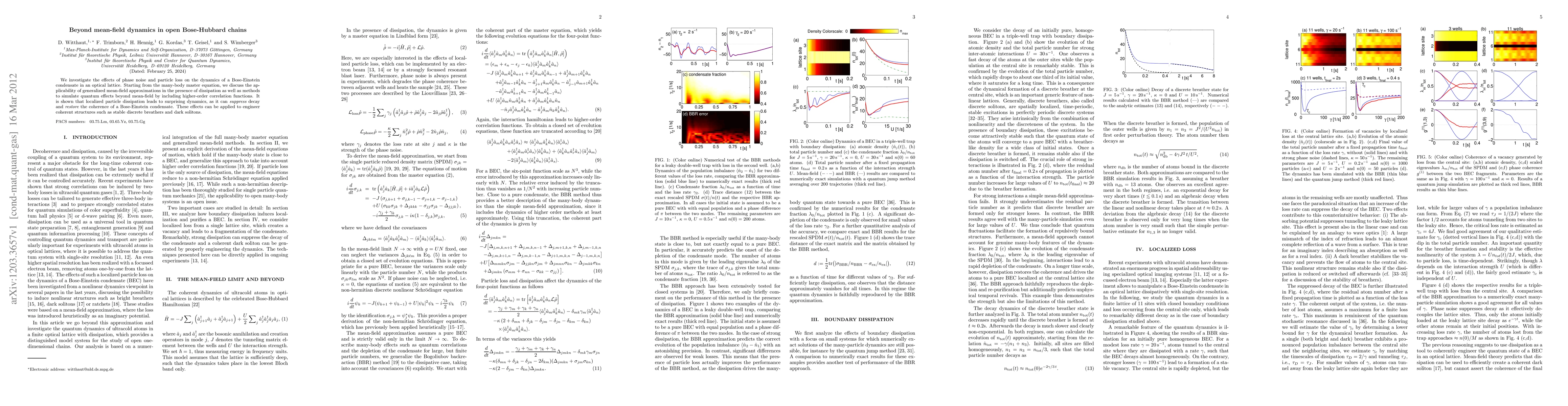 We investigate the effects of phase noise and particle loss on the dynamics of a Bose-Einstein condensate in an optical lattice. Starting from the many-body master equation, we discuss the applicability of generalized mean-field approximations in the presence of dissipation as well as methods to simulate quantum effects beyond mean-field by including higher-order correlation functions. It is shown that localized particle dissipation leads to surprising dynamics, as it can suppress decay and restore the coherence of a Bose-Einstein condensate. These effects can be applied to engineer coherent structures such as stable discrete breathers and dark solitons.