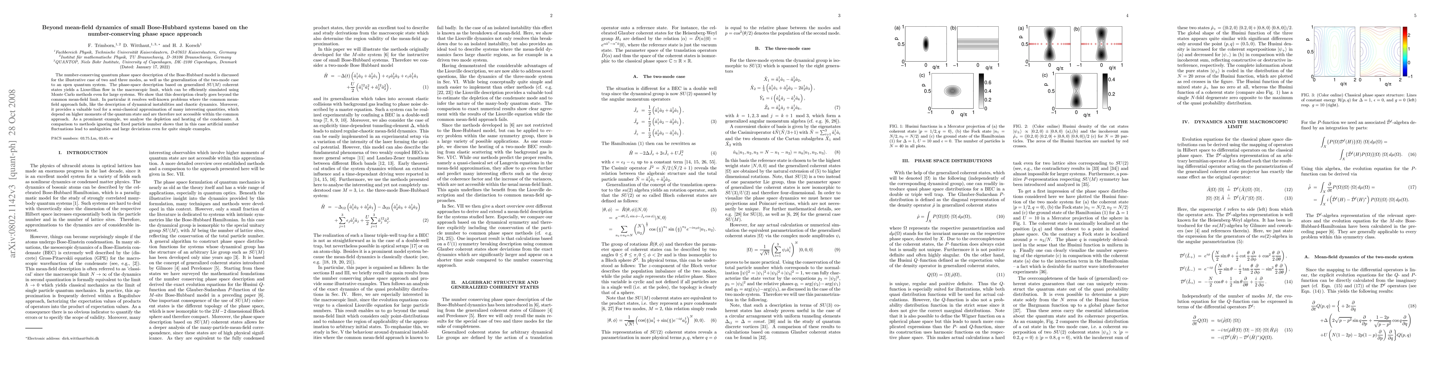 The number-conserving quantum phase space description of the Bose-Hubbard model is discussed for the illustrative case of two and three modes, as well as the generalization of the two-mode case to an open quantum system. The phase-space description based on generalized SU(M) coherent states yields a Liouvillian flow in the macroscopic limit, which can be efficiently simulated using Monte Carlo methods even for large systems. We show that this description clearly goes beyond the common mean-field limit. In particular it resolves well-known problems where the common mean-field approach fails, like the description of dynamical instabilities and chaotic dynamics. Moreover, it provides a valuable tool for a semi-classical approximation of many interesting quantities, which depend on higher moments of the quantum state and are therefore not accessible within the common approach. As a prominent example, we analyse the depletion and heating of the condensate. A comparison to methods ignoring the fixed particle number shows that in this case artificial number fluctuations lead to ambiguities and large deviations even for quite simple examples.
