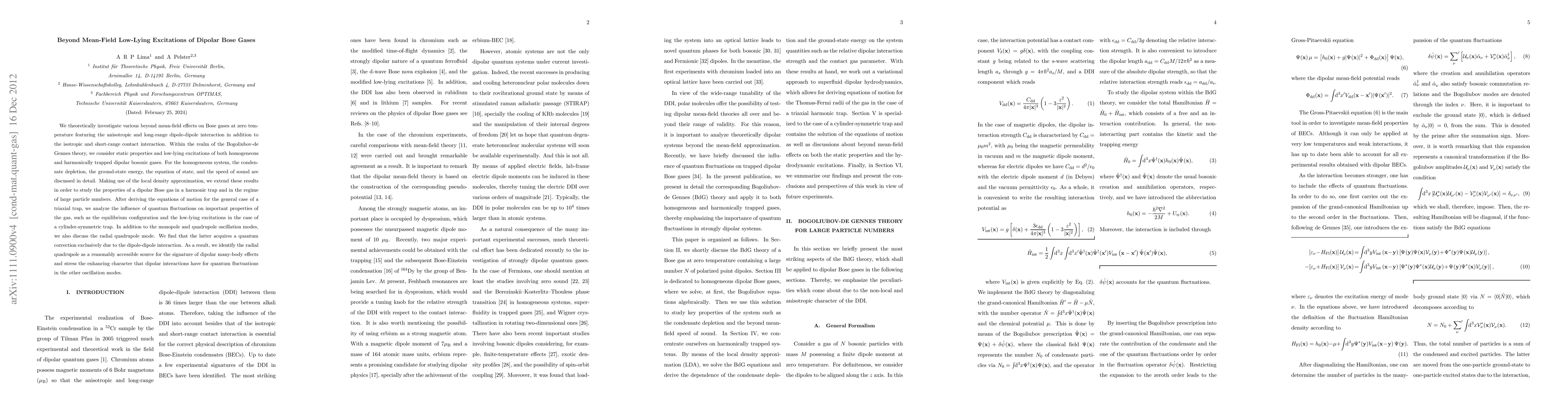 This paper explores beyond mean-field effects in dipolar Bose gases, focusing on anisotropic dipole-dipole interactions and isotropic contact interactions. It uses Bogoliubov-de Gennes theory to analyze static properties and low-lying excitations in both homogeneous and harmonically trapped systems, highlighting the unique quantum correction to the radial quadrupole mode due to dipolar interactions.