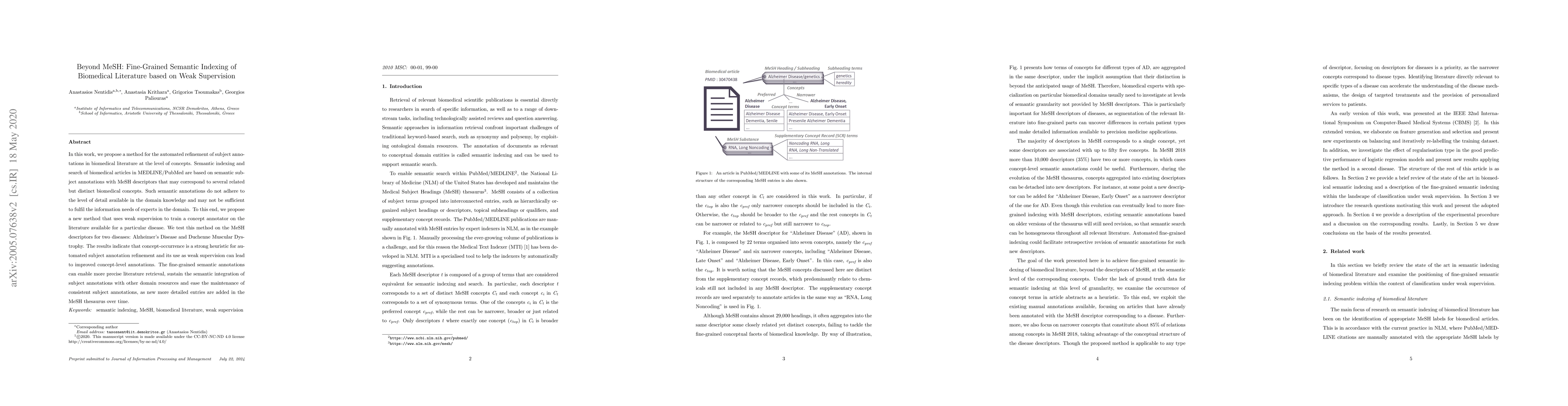 This paper proposes a method for refining subject annotations in biomedical literature using weak supervision to enhance semantic indexing. The approach aims to improve the precision of concept-level annotations, enabling better literature retrieval and integration with other domain resources.