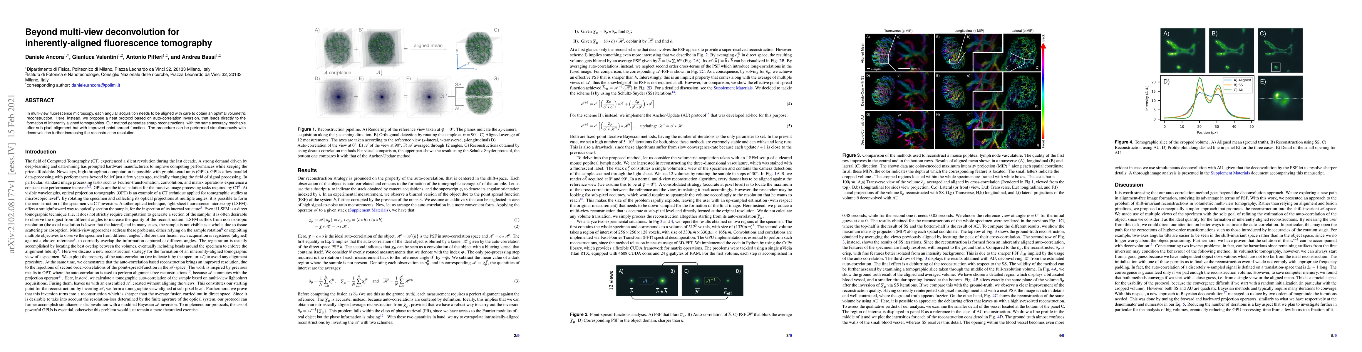In multi-view fluorescence microscopy, each angular acquisition needs to be aligned with care to obtain an optimal volumetric reconstruction. Here, instead, we propose a neat protocol based on auto-correlation inversion, that leads directly to the formation of inherently aligned tomographies. Our method generates sharp reconstructions, with the same accuracy reachable after sub-pixel alignment but with improved point-spread-function. The procedure can be performed simultaneously with deconvolution further increasing the reconstruction resolution.