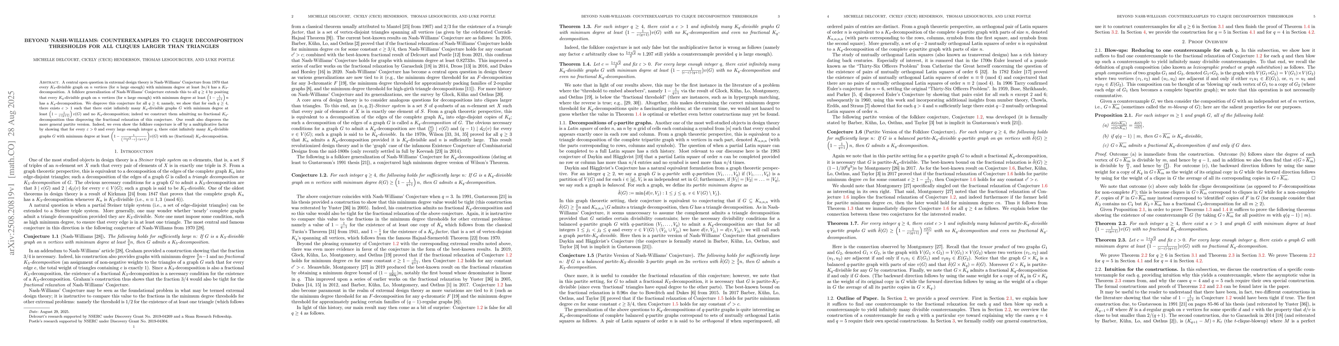 A central open question in extremal design theory is Nash-Williams' Conjecture from 1970 that every $K_3$-divisible graph on $n$ vertices (for $n$ large enough) with minimum degree at least $3n/4$ has a $K_3$-decomposition. A folklore generalization of Nash-Williams' Conjecture extends this to all $q\ge 4$ by positing that every $K_q$-divisible graph on $n$ vertices (for $n$ large enough) with minimum degree at least $\left(1-\frac{1}{q+1}\right)n$ has a $K_q$-decomposition. We disprove this conjecture for all $q\ge 4$; namely, we show that for each $q\ge 4$, there exists $c > 1$ such that there exist infinitely many $K_q$-divisible graphs $G$ with minimum degree at least $\left(1-\frac{1}{c\cdot(q+1)}\right)v(G)$ and no $K_q$-decomposition; indeed we construct them admitting no fractional $K_q$-decomposition thus disproving the fractional relaxation of this conjecture. Our result also disproves the more general partite version. Indeed, we even show the folklore conjecture is off by a multiplicative factor by showing that for every $\varepsilon > 0$ and every large enough integer $q$, there exist infinitely many $K_q$-divisible graphs $G$ with minimum degree at least $\bigg(1-\frac{1}{\left(\frac{1+\sqrt{2}}{2}-\varepsilon\right)\cdot (q+1)}\bigg)v(G)$ with no (fractional) $K_q$-decomposition.