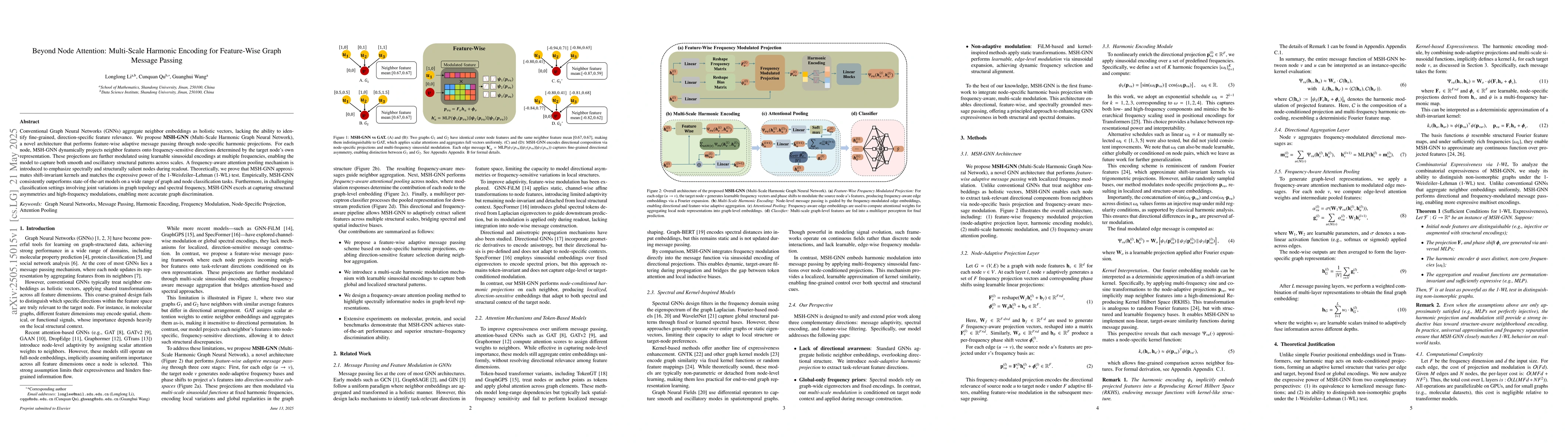 The introduction of Multi-Scale Harmonic Encoding for feature-wise graph message passing, enabling the capture of both smooth and oscillatory structural patterns across scales.