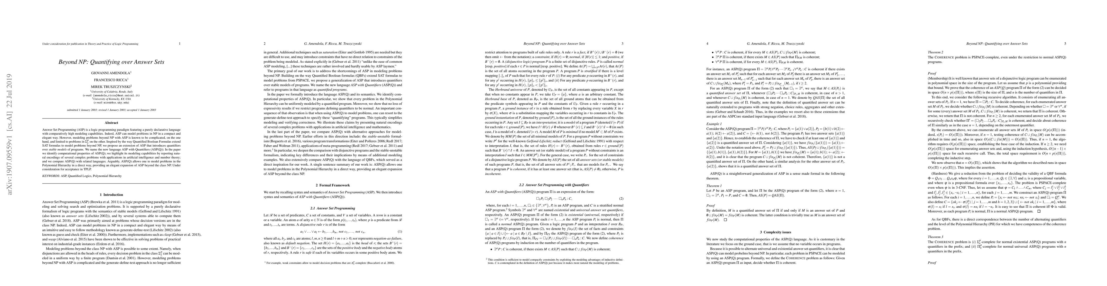 Francesco Ricca, Giuseppe Mazzotta, Mirek Truszczynski