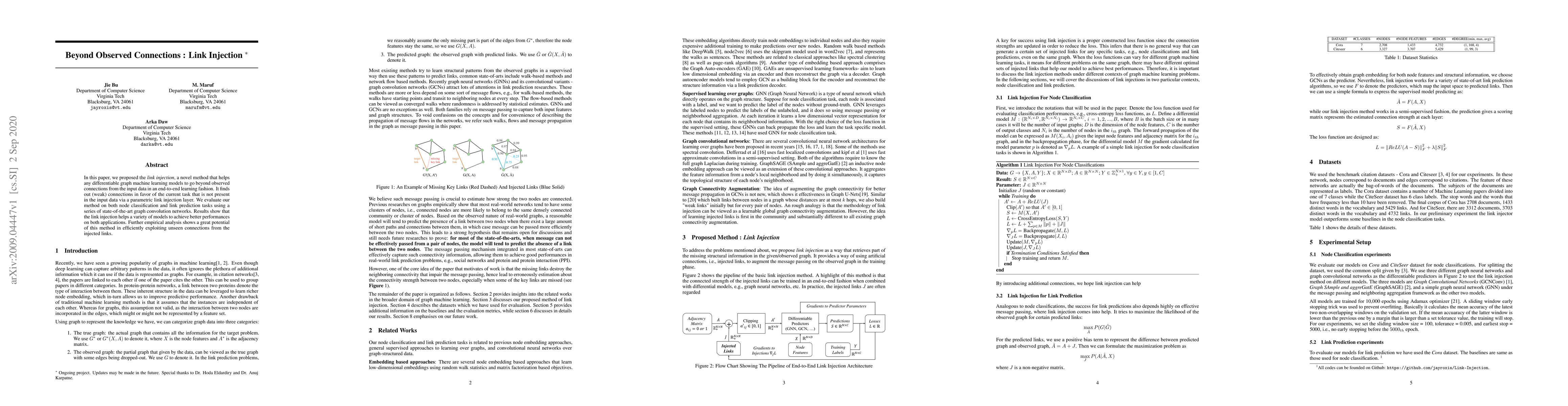 In this paper, we proposed the \textit{link injection}, a novel method that helps any differentiable graph machine learning models to go beyond observed connections from the input data in an end-to-end learning fashion. It finds out (weak) connections in favor of the current task that is not present in the input data via a parametric link injection layer. We evaluate our method on both node classification and link prediction tasks using a series of state-of-the-art graph convolution networks. Results show that the link injection helps a variety of models to achieve better performances on both applications. Further empirical analysis shows a great potential of this method in efficiently exploiting unseen connections from the injected links.