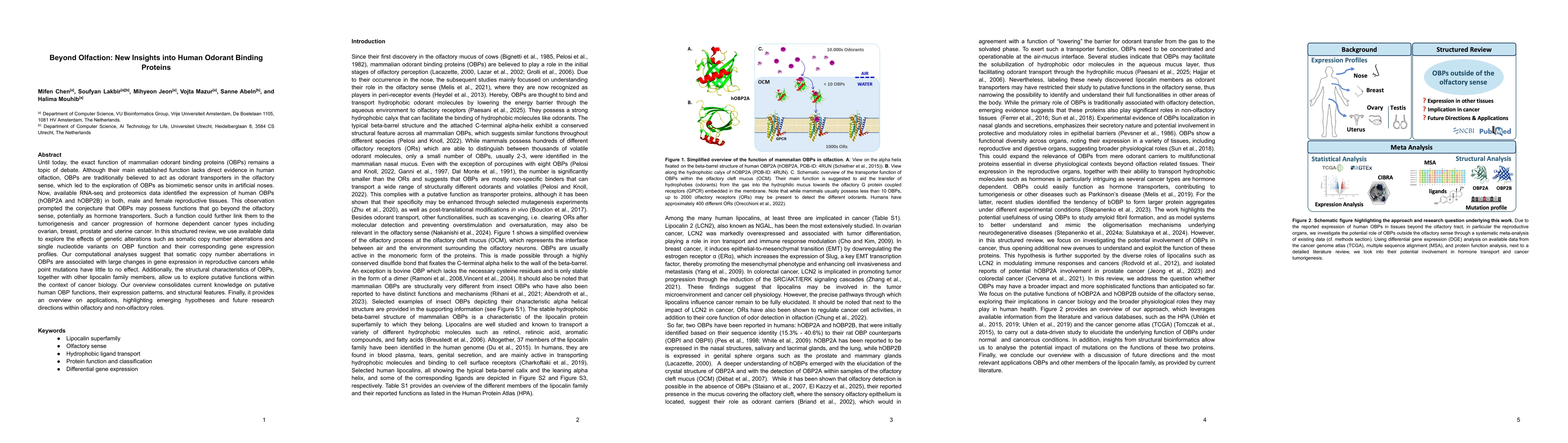 The research highlights the potential of human OBPs in non-olfactory functions, particularly as hormone transporters, and their association with reproductive cancers, expanding the understanding beyond their traditional olfactory roles.