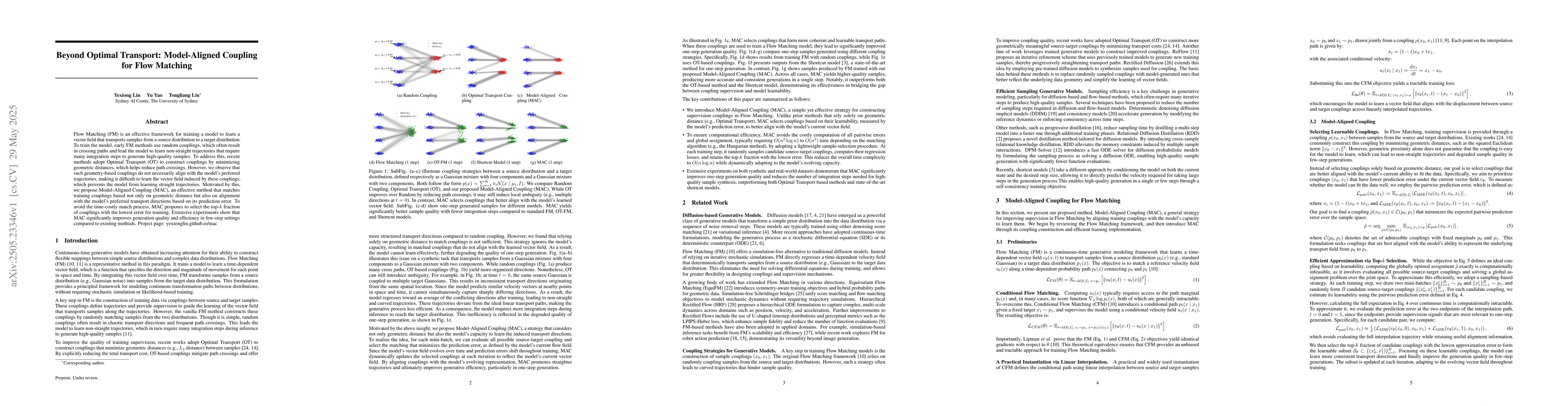 The paper proposes Model-Aligned Coupling (MAC), a framework that improves flow-based generative models by selecting learnable couplings during training. MAC aligns supervision with directions the model can effectively learn by leveraging the model's evolving vector field to identify couplings with low prediction error, unlike existing methods that consider only geometric distances.