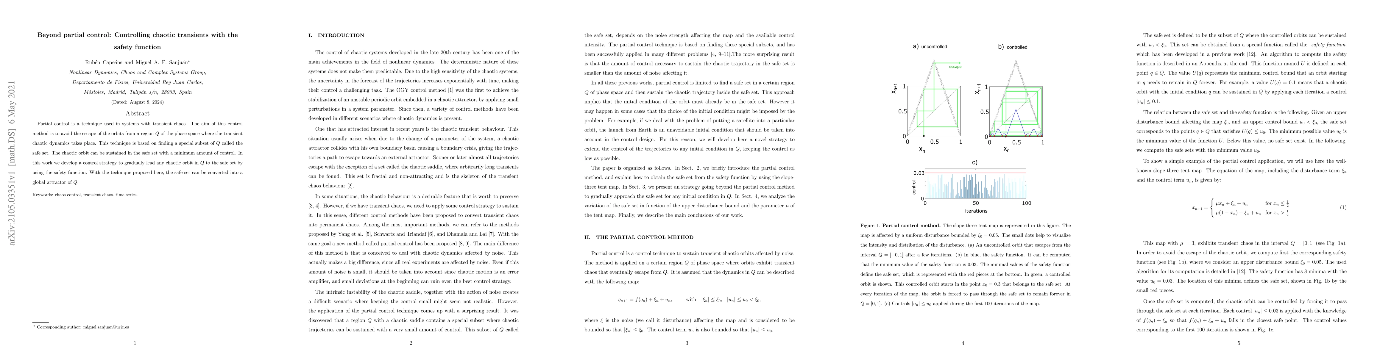 Partial control is a technique used in systems with transient chaos. The aim of this control method is to avoid the escape of the orbits from a region Q of the phase space where the transient chaotic dynamics takes place. This technique is based on finding a special subset of Q called the safe set. The chaotic orbit can be sustained in the safe set with a minimum amount of control. In this work we develop a control strategy to gradually lead any chaotic orbit in Q to the safe set by using the safety function. With the technique proposed here, the safe set can be converted into a global attractor of Q.
