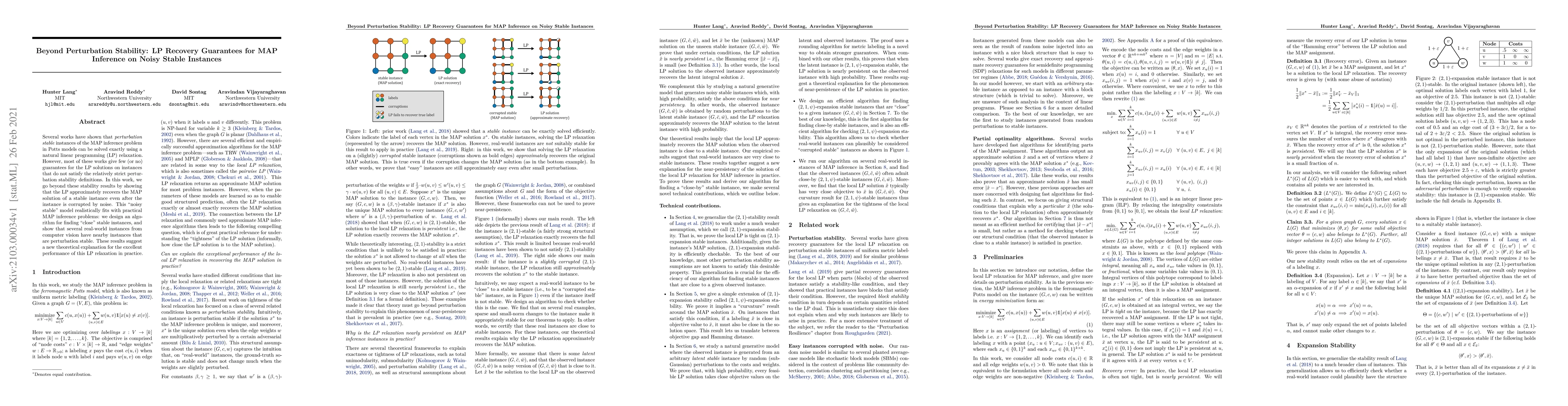 This paper demonstrates that linear programming (LP) can approximately recover the MAP solution in noisy stable instances of Potts models, even when the instances are corrupted by noise. It provides a new theoretical explanation for the practical success of LP relaxations in MAP inference problems.
