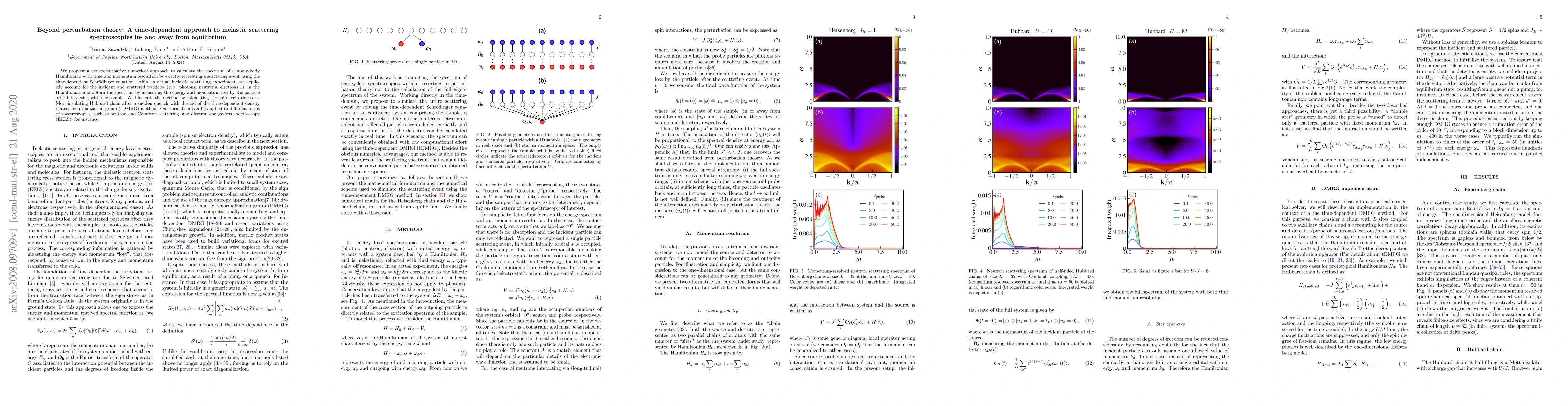 This paper proposes a non-perturbative numerical method to calculate the spectrum of many-body systems using time-dependent Schrödinger equation, applicable to various inelastic scattering spectroscopies. The method, demonstrated on a Hubbard chain, uses tDMRG to account for incident and scattered particles, providing time and momentum resolution.