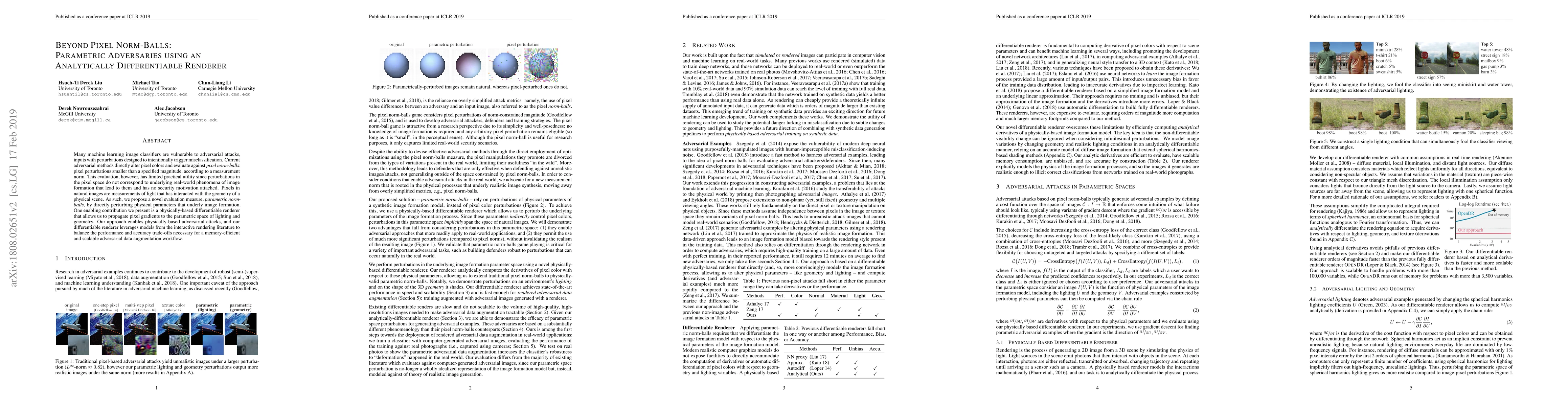 This paper proposes a novel method for generating adversarial attacks on image classifiers by directly perturbing the physical parameters of lighting and geometry rather than pixel values. It introduces a differentiable renderer to facilitate gradient propagation from pixel space to the parametric space, enabling a more meaningful and effective adversarial attack.