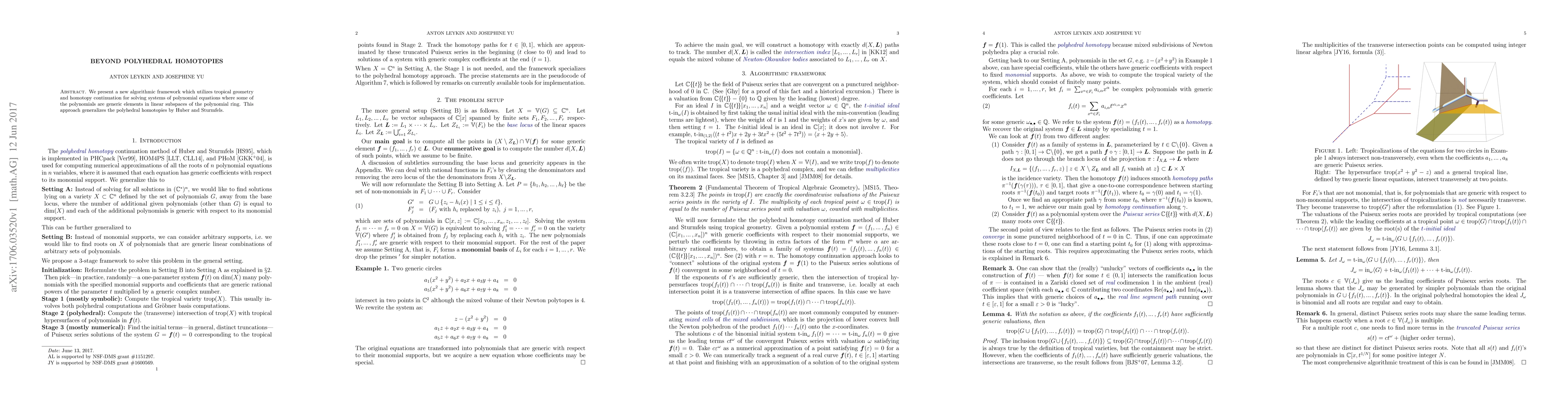 We present a new algorithmic framework which utilizes tropical geometry and homotopy continuation for solving systems of polynomial equations where some of the polynomials are generic elements in linear subspaces of the polynomial ring. This approach generalizes the polyhedral homotopies by Huber and Sturmfels.