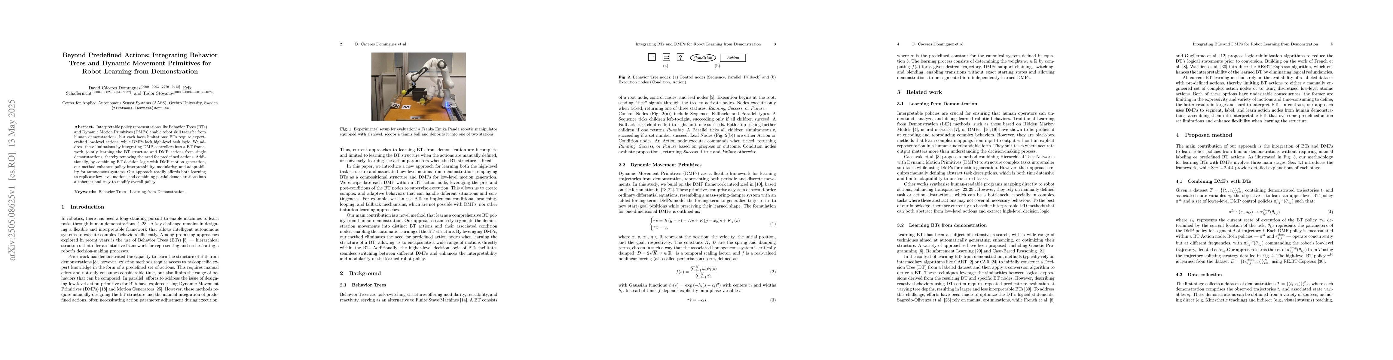 This research integrates Behavior Trees and Dynamic Movement Primitives to enable robots to learn from human demonstrations without predefined actions, enhancing interpretability and adaptability.