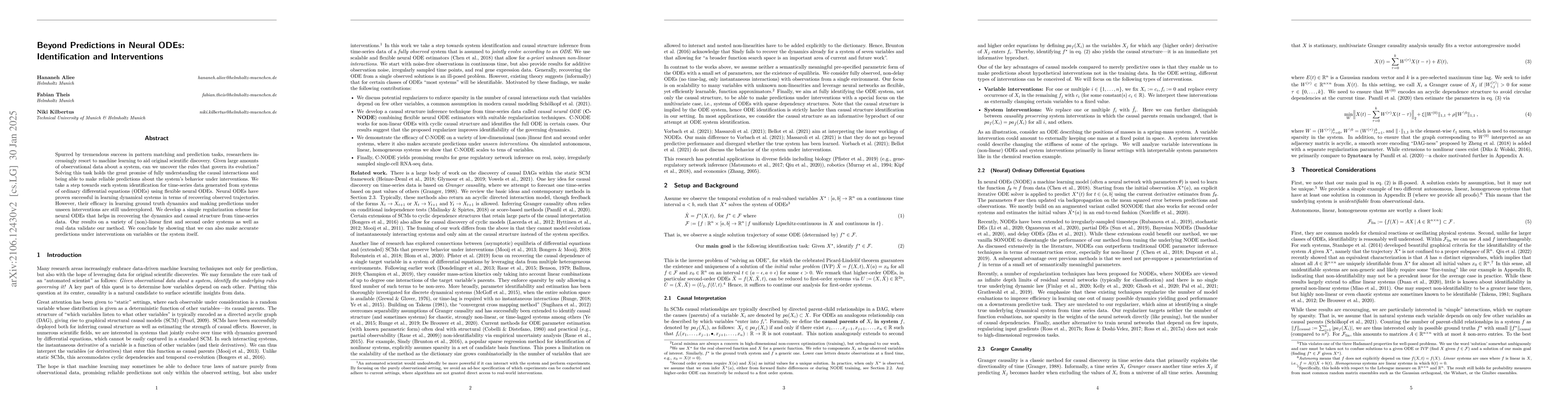Spurred by tremendous success in pattern matching and prediction tasks, researchers increasingly resort to machine learning to aid original scientific discovery. Given large amounts of observational data about a system, can we uncover the rules that govern its evolution? Solving this task holds the great promise of fully understanding the causal interactions and being able to make reliable predictions about the system's behavior under interventions. We take a step towards answering this question for time-series data generated from systems of ordinary differential equations (ODEs). While the governing ODEs might not be identifiable from data alone, we show that combining simple regularization schemes with flexible neural ODEs can robustly recover the dynamics and causal structures from time-series data. Our results on a variety of (non)-linear first and second order systems as well as real data validate our method. We conclude by showing that we can also make accurate predictions under interventions on variables or the system itself.