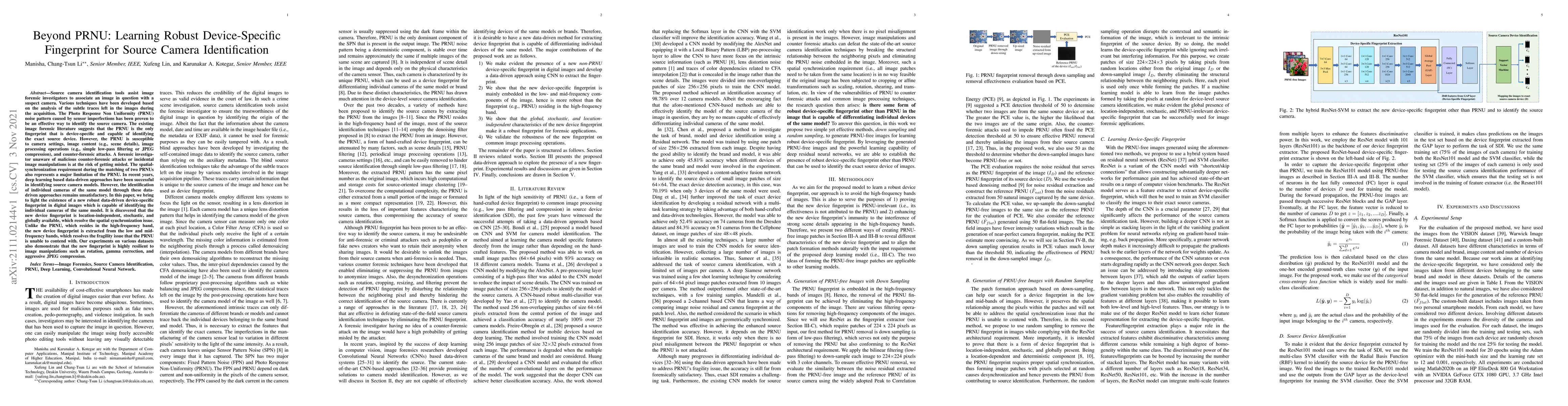 This paper introduces a new robust device-specific fingerprint for source camera identification, which is location-independent and extracted from low and mid-frequency bands, addressing the limitations of the traditional PRNU method. The new fingerprint is highly resilient to various image manipulations and counter-forensic attacks.