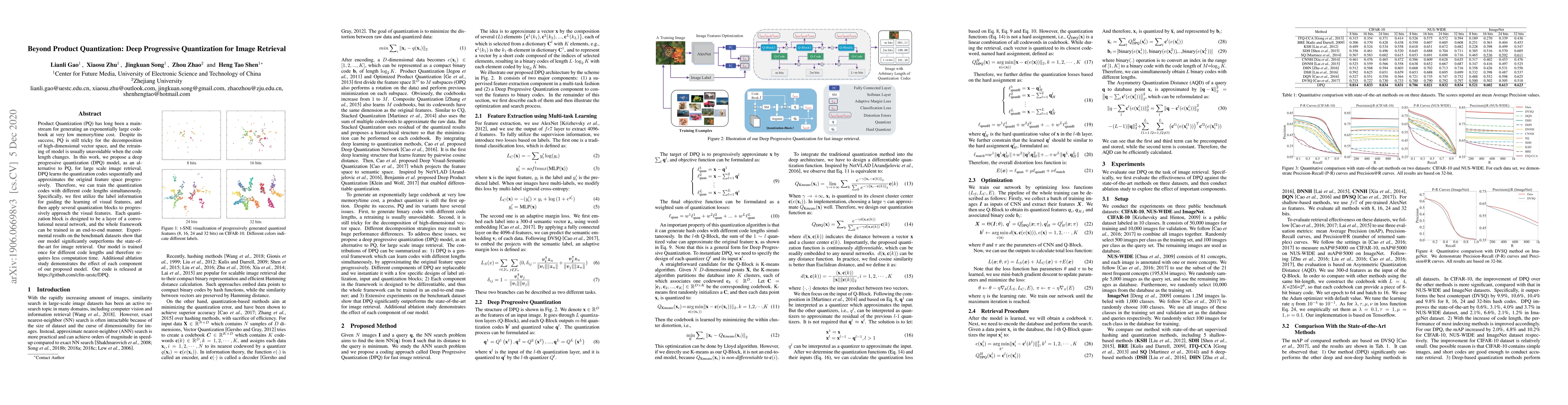 This paper proposes a deep progressive quantization (DPQ) model for large-scale image retrieval, which sequentially learns quantization codes to approximate the original feature space progressively. Unlike traditional product quantization, DPQ can be trained end-to-end and requires less computation time, achieving superior performance on benchmark datasets.