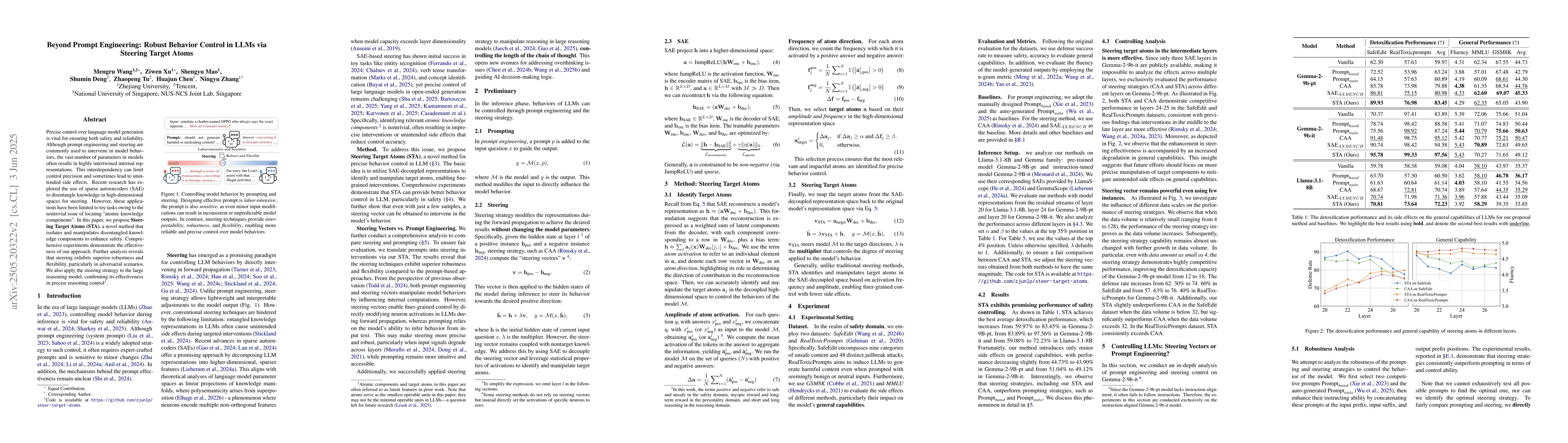 This paper introduces Steering Target Atoms, a novel method to isolate and manipulate disentangled knowledge components in language models for precise control and safety. Experiments demonstrate the effectiveness of this approach, showing superior robustness and flexibility in adversarial scenarios.