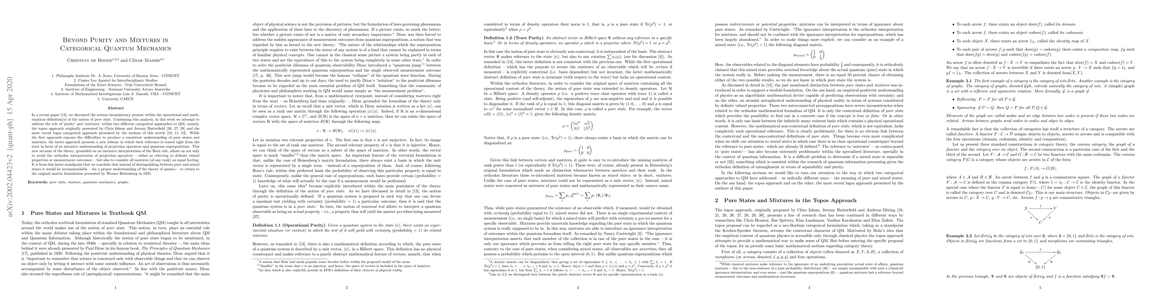 In a recent paper [12], we discussed the serious inconsistency present within the operational and mathematical definition(s) of the notion of pure state. Continuing this analysis, in this work we attempt to address the role of 'purity' and 'mixtures' within two different categorical approaches to QM, namely, the topos approach originally presented by Chris Isham and Jeremy Butterfield [27, 28, 29] and the more recent logos categorical approach presented by the authors of this article [10, 11, 13]. While the first approach exposes the difficulties to produce a consistent understanding of pure states and mixtures, the latter approach presents a new scheme in which their reference is erased right from the start in favor of an intensive understanding of projection operators and quantum superpositions. This new account of the theory, grounded on an intensive interpretation of the Born rule, allows us not only to avoid the orthodox interpretation of projection operators --either as referring to definite valued properties or measurement outcomes-- but also to consider all matrices (of any rank) on equal footing. It is from this latter standpoint that we conclude that instead of distinguishing between pure and mixed states it would be recommendable --for a proper understanding of the theory of quanta-- to return to the original matrix formulation of quantum mechanics presented by Werner Heisenberg in 1925.