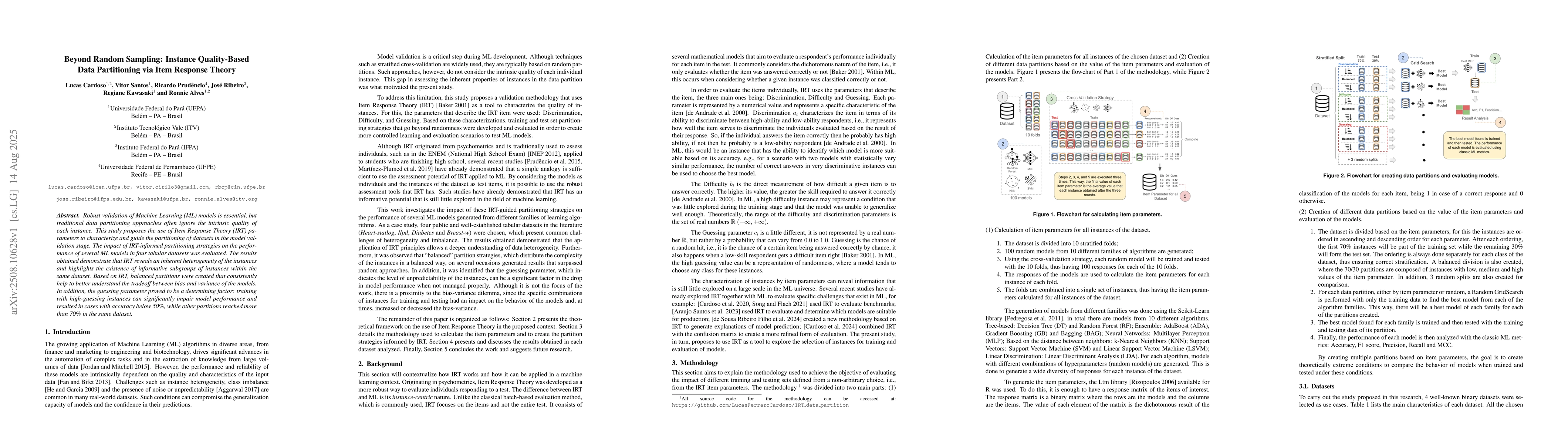Robust validation of Machine Learning (ML) models is essential, but traditional data partitioning approaches often ignore the intrinsic quality of each instance. This study proposes the use of Item Response Theory (IRT) parameters to characterize and guide the partitioning of datasets in the model validation stage. The impact of IRT-informed partitioning strategies on the performance of several ML models in four tabular datasets was evaluated. The results obtained demonstrate that IRT reveals an inherent heterogeneity of the instances and highlights the existence of informative subgroups of instances within the same dataset. Based on IRT, balanced partitions were created that consistently help to better understand the tradeoff between bias and variance of the models. In addition, the guessing parameter proved to be a determining factor: training with high-guessing instances can significantly impair model performance and resulted in cases with accuracy below 50%, while other partitions reached more than 70% in the same dataset.