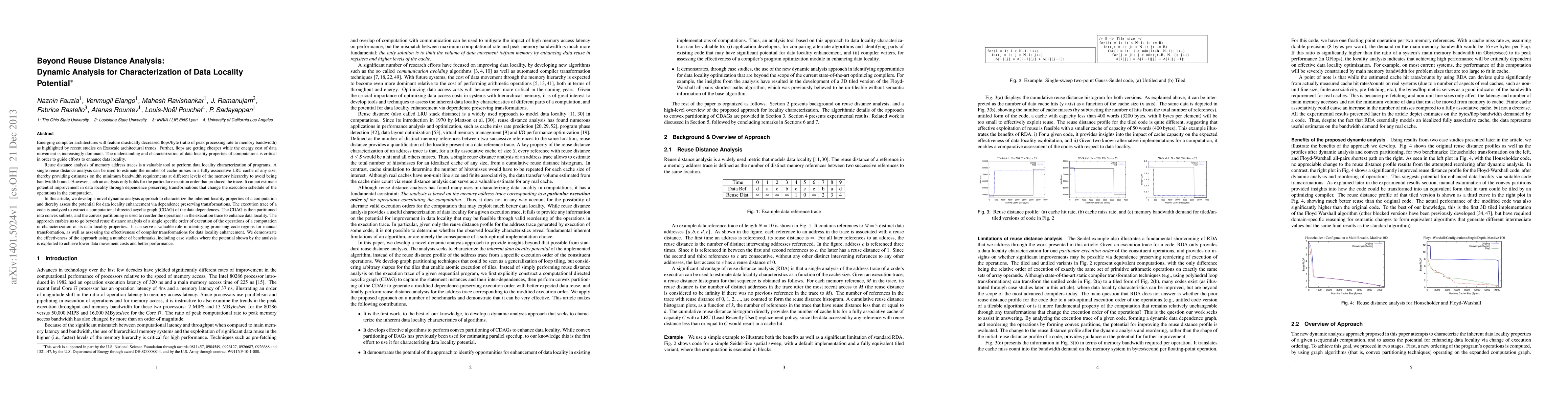 Unlike previous reuse distance analysis that focuses on a specific execution order, this work provides a schedule-independent characterization of inherent data locality characteristics of a CDAG.