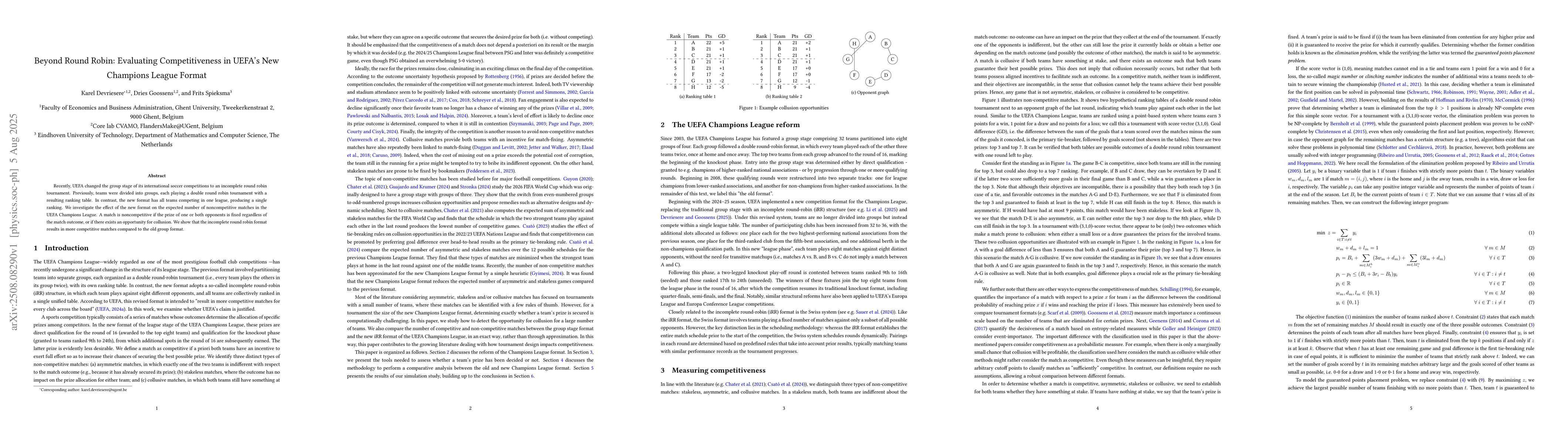 Recently, UEFA changed the group stage of its international soccer competitions to an incomplete round robin tournament. Previously, teams were divided into groups, each playing a double round robin tournament with a resulting ranking table. In contrast, the new format has all teams competing in one league, producing a single ranking. We investigate the effect of the new format on the expected number of noncompetitive matches in the UEFA Champions League. A match is noncompetitive if the prize of one or both opponents is fixed regardless of the match outcome, or if there exists an opportunity for collusion. We show that the incomplete round robin format results in more competitive matches compared to the old group format.
