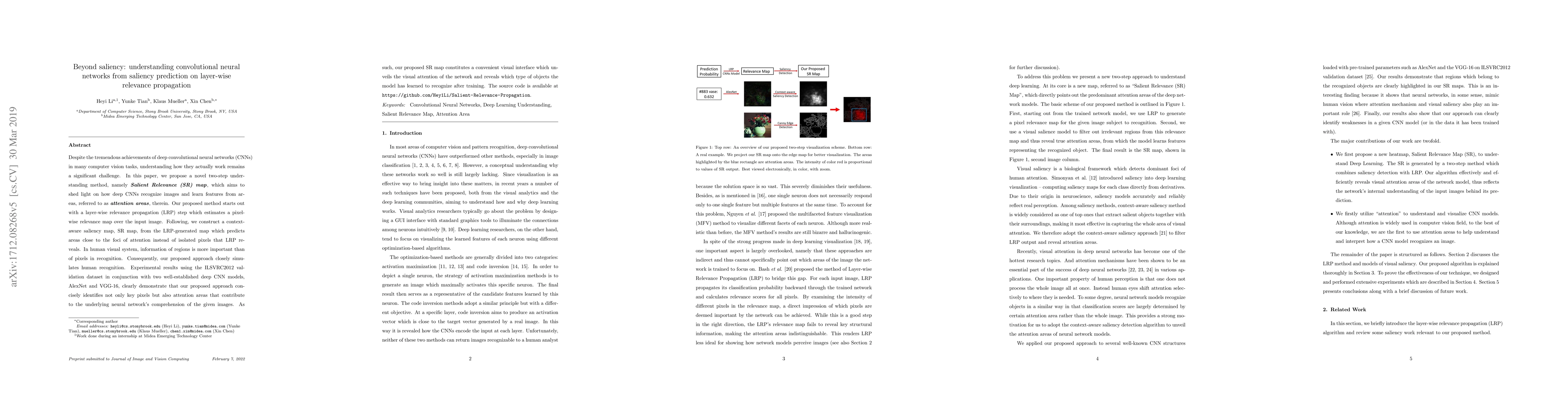 This paper proposes a Salient Relevance (SR) map method to better understand how convolutional neural networks (CNNs) recognize images by identifying attention areas. It uses layer-wise relevance propagation (LRP) to generate a pixel-wise relevance map, followed by constructing a context-aware saliency map that highlights relevant regions, simulating human visual recognition. Experimental results on AlexNet and VGG-16 models show that the SR map effectively identifies key areas contributing to the network's comprehension.