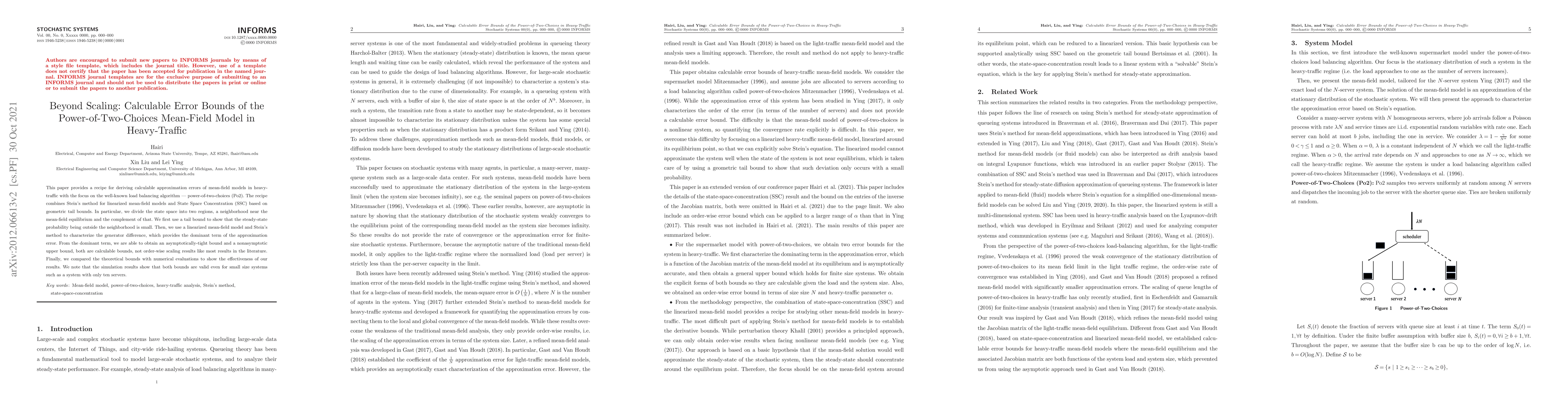 This paper provides a recipe for deriving calculable approximation errors of mean-field models in heavy-traffic with the focus on the well-known load balancing algorithm -- power-of-two-choices (Po2). The recipe combines Stein's method for linearized mean-field models and State Space Concentration (SSC) based on geometric tail bounds. In particular, we divide the state space into two regions, a neighborhood near the mean-field equilibrium and the complement of that. We first use a tail bound to show that the steady-state probability being outside the neighborhood is small. Then, we use a linearized mean-field model and Stein's method to characterize the generator difference, which provides the dominant term of the approximation error. From the dominant term, we are able to obtain an asymptotically-tight bound and a nonasymptotic upper bound, both are calculable bounds, not order-wise scaling results like most results in the literature. Finally, we compared the theoretical bounds with numerical evaluations to show the effectiveness of our results. We note that the simulation results show that both bounds are valid even for small size systems such as a system with only ten servers.