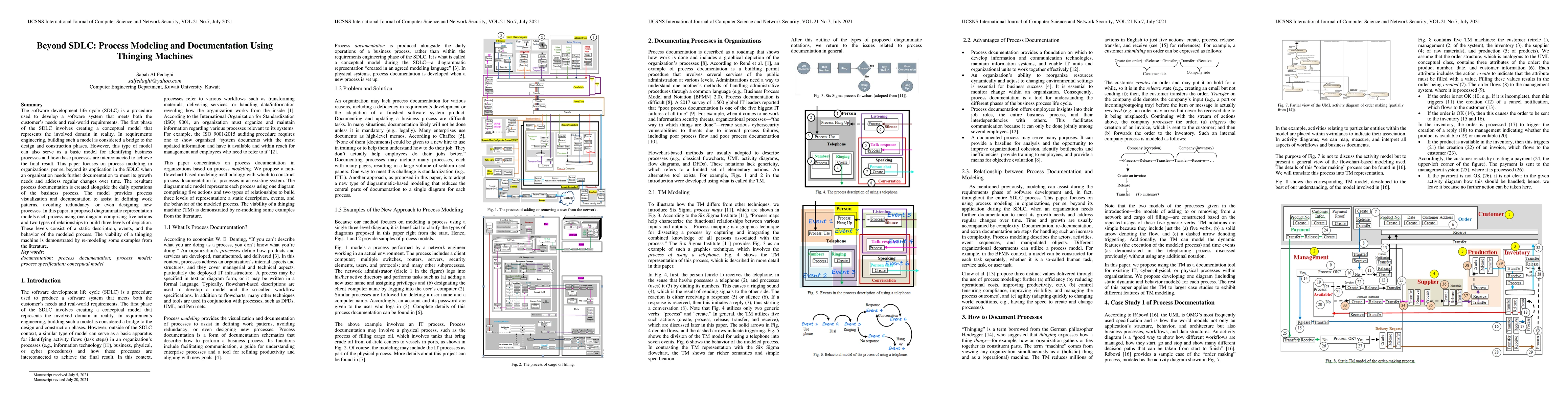 This paper proposes a method for process modeling and documentation beyond the traditional SDLC, using thinging machines to create a diagrammatic representation of business processes. The model includes three levels of depiction: static description, events, and behavior, aiming to enhance process visualization and support organizational growth.