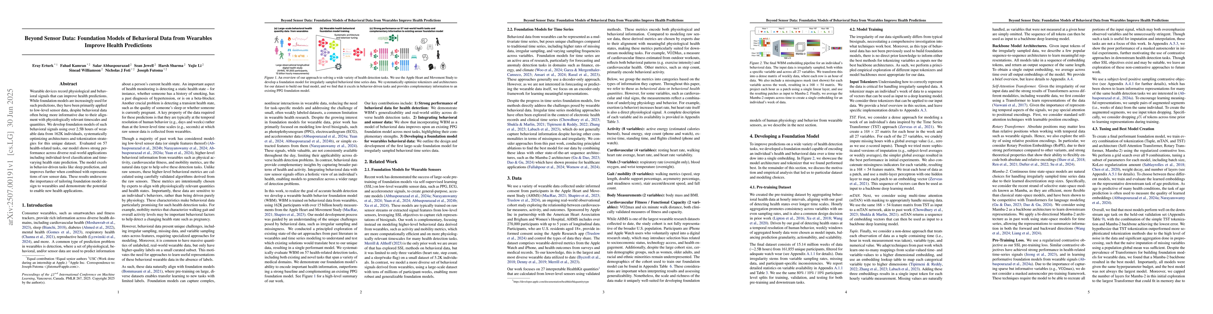 This research introduces foundation models tailored for behavioral data from wearables, demonstrating improved health prediction capabilities over traditional sensor data. Evaluated on 57 health tasks, these models, optimized from 2.5B hours of data from 162K individuals, excel in tasks like sleep prediction and further enhance with combined sensor data representations, paving the way for innovative health applications.