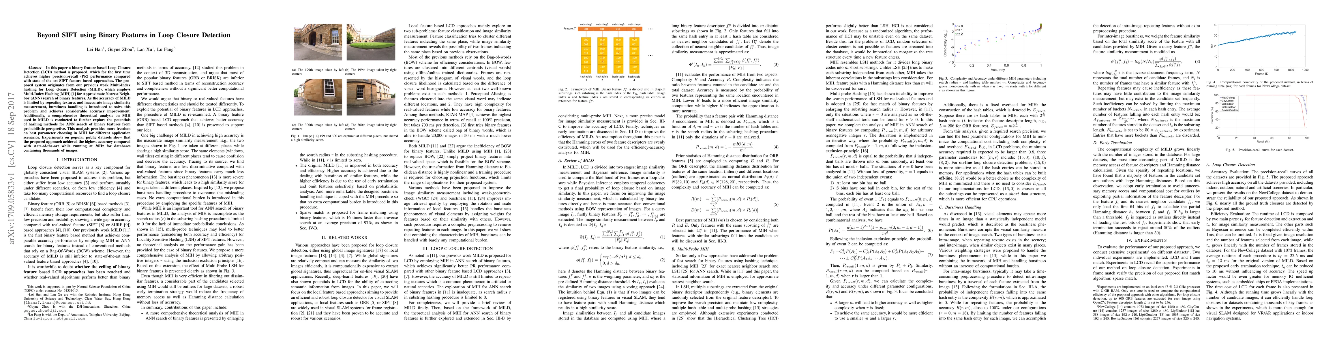 A new method for loop closure detection using binary features outperforms existing state-of-the-art SIFT-based approaches with higher precision-recall accuracy. This system achieves high accuracy while running at 30Hz on large databases of images.
