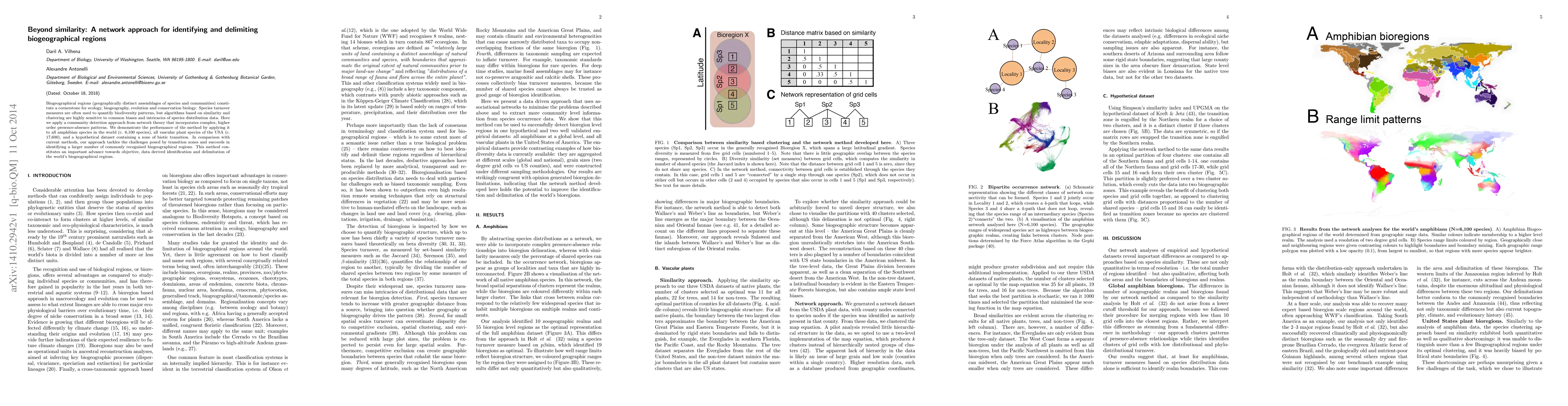 This paper proposes a network theory-based community detection method to identify and delimit biogeographical regions, addressing biases in traditional similarity-based clustering. The new approach successfully identifies more commonly recognized regions compared to existing methods, demonstrated through applications on global amphibians and US vascular plants.