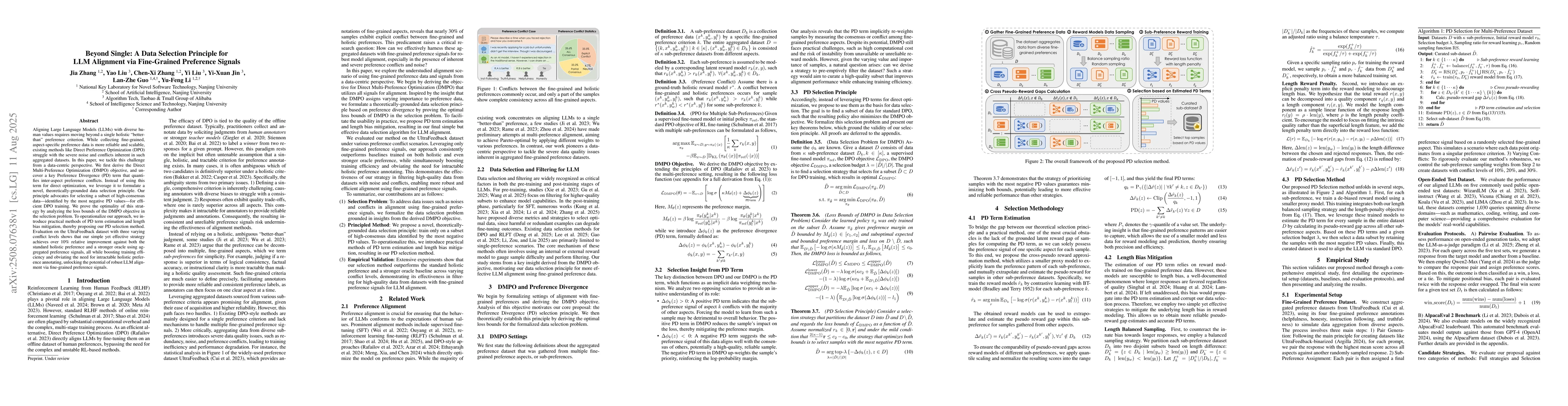 The work stands out by tackling the issue of preference alignment in LLMs through a data-centric approach, focusing on fine-grained preference signals and proposing a theoretically-backed data selection strategy.