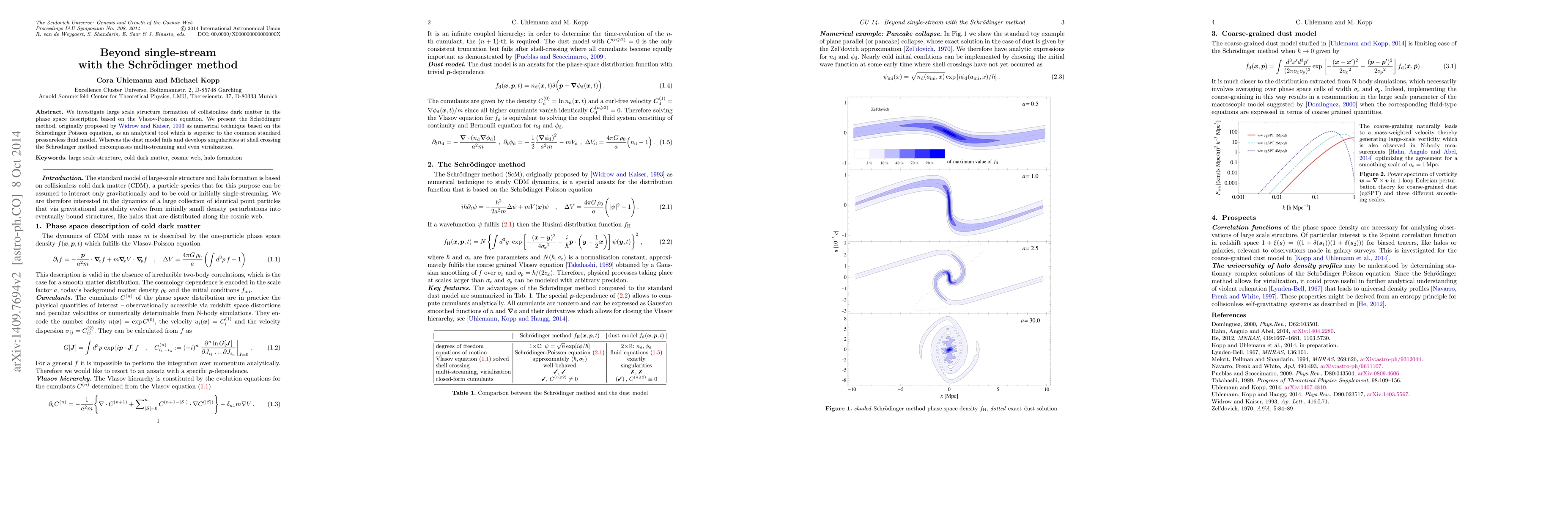 The Schrödinger method provides an analytical tool for studying collisionless dark matter dynamics, allowing for the calculation of cumulants and improved understanding of large-scale structure formation.
