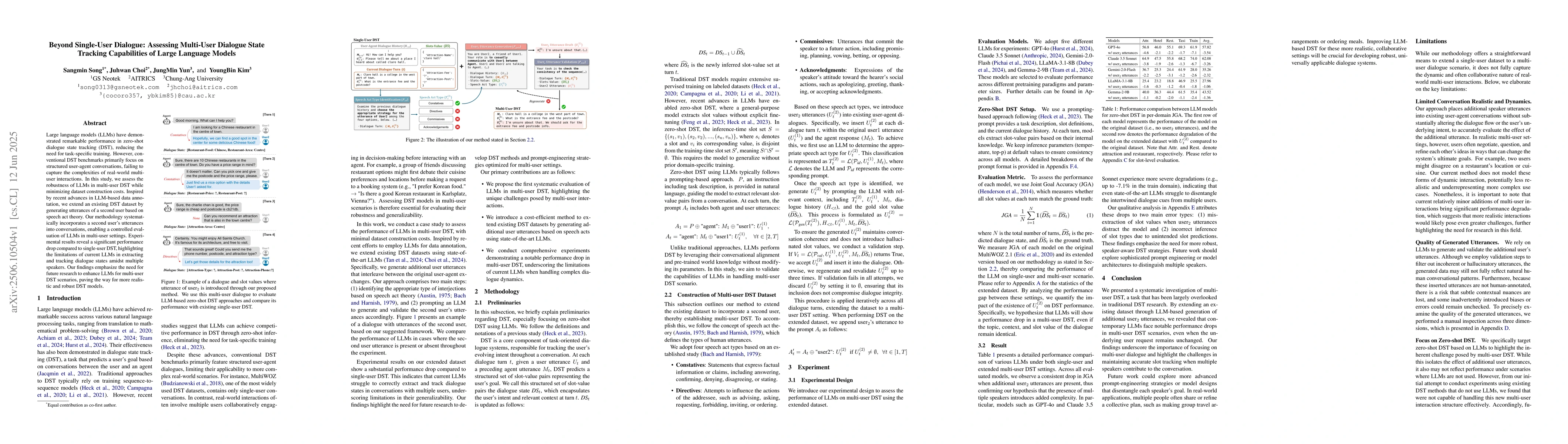 Large language models (LLMs) have demonstrated remarkable performance in zero-shot dialogue state tracking (DST), reducing the need for task-specific training. However, conventional DST benchmarks primarily focus on structured user-agent conversations, failing to capture the complexities of real-world multi-user interactions. In this study, we assess the robustness of LLMs in multi-user DST while minimizing dataset construction costs. Inspired by recent advances in LLM-based data annotation, we extend an existing DST dataset by generating utterances of a second user based on speech act theory. Our methodology systematically incorporates a second user's utterances into conversations, enabling a controlled evaluation of LLMs in multi-user settings. Experimental results reveal a significant performance drop compared to single-user DST, highlighting the limitations of current LLMs in extracting and tracking dialogue states amidst multiple speakers. Our findings emphasize the need for future research to enhance LLMs for multi-user DST scenarios, paving the way for more realistic and robust DST models.